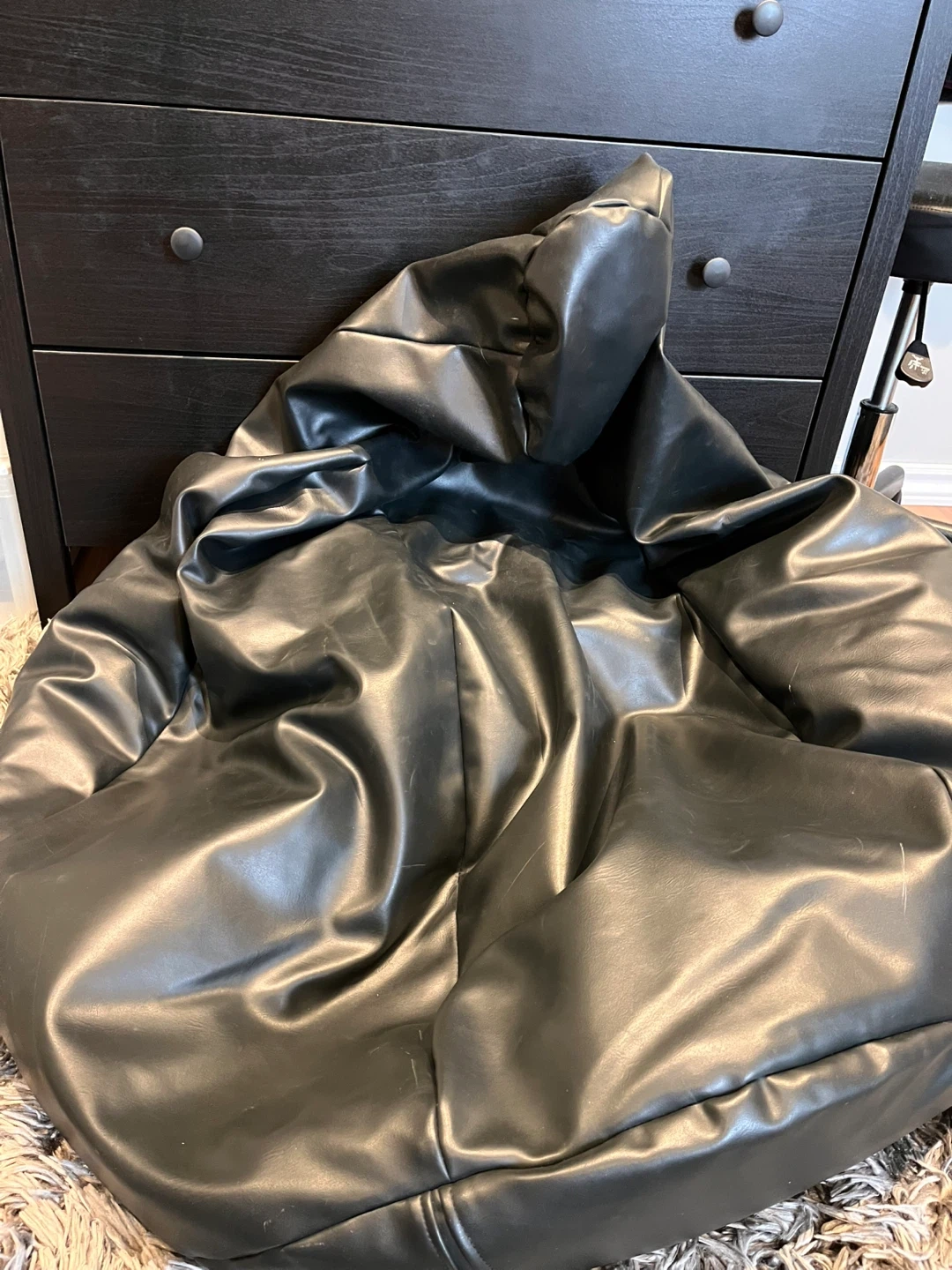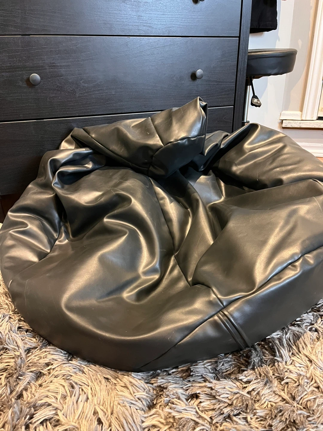 Black Faux Leather Bean Bag Chair