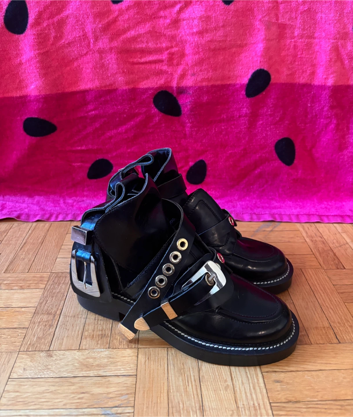 Balenciaga Black Leather Buckle Ankle Boots Size 36
