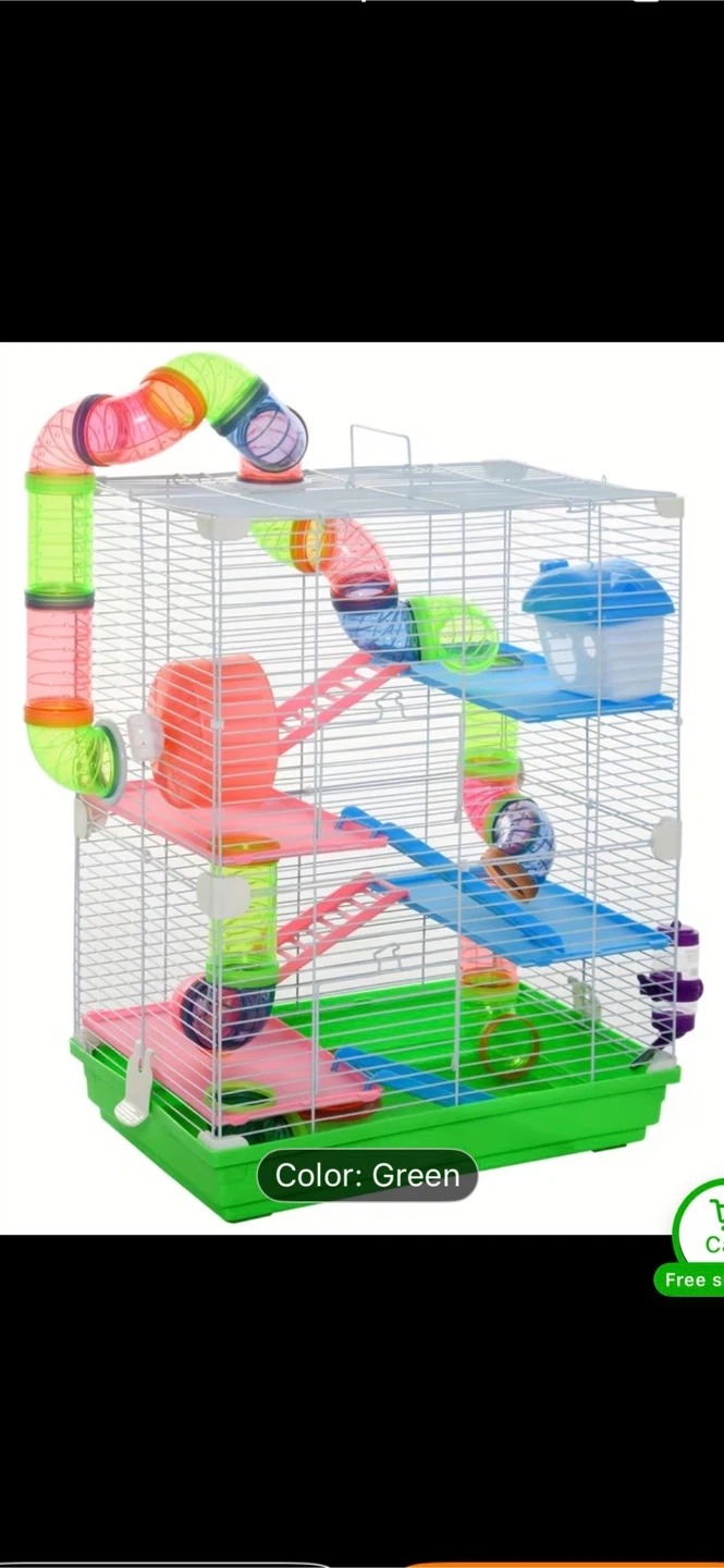 I'm selling a basically brand new, five-level hamster cage we only used the cage for three days. It provides plenty of space for your small pet to explore and play! The cage is in excellent condition. It features multiple platforms, ladders, and a fun tube system to keep your hamster entertained.