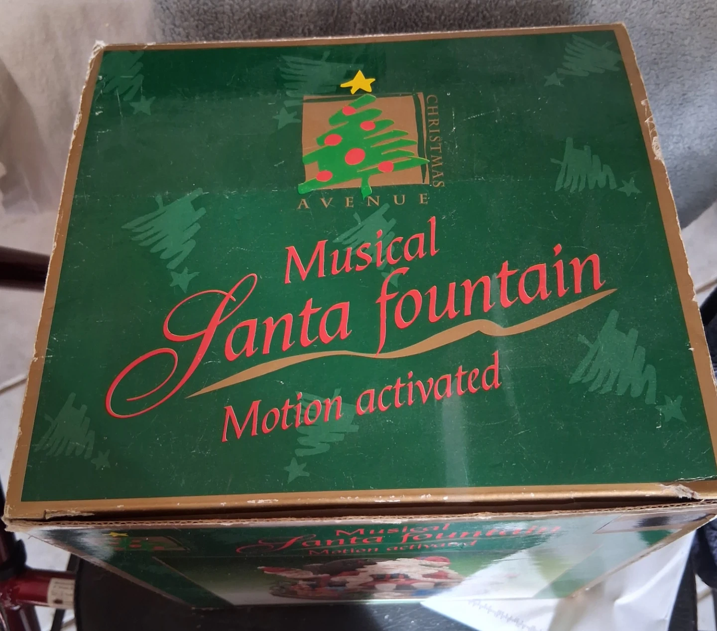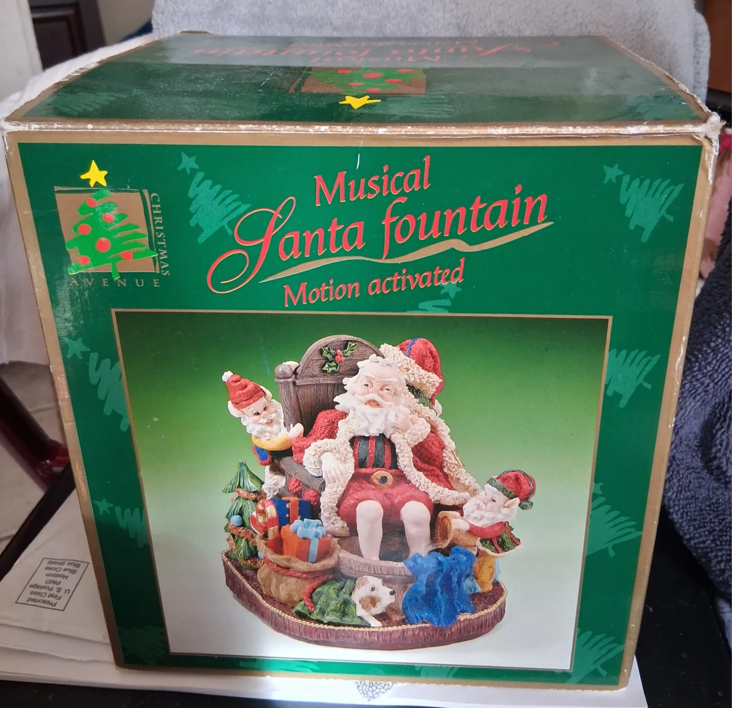 Brand New Santa Fountain. This musical Santa fountain is motion activated and plays 8 beautiful Christmas songs. It's made of hand-painted polyresin and uses 4 AA batteries, which are not included. Adds a festive touch to your holiday decor!