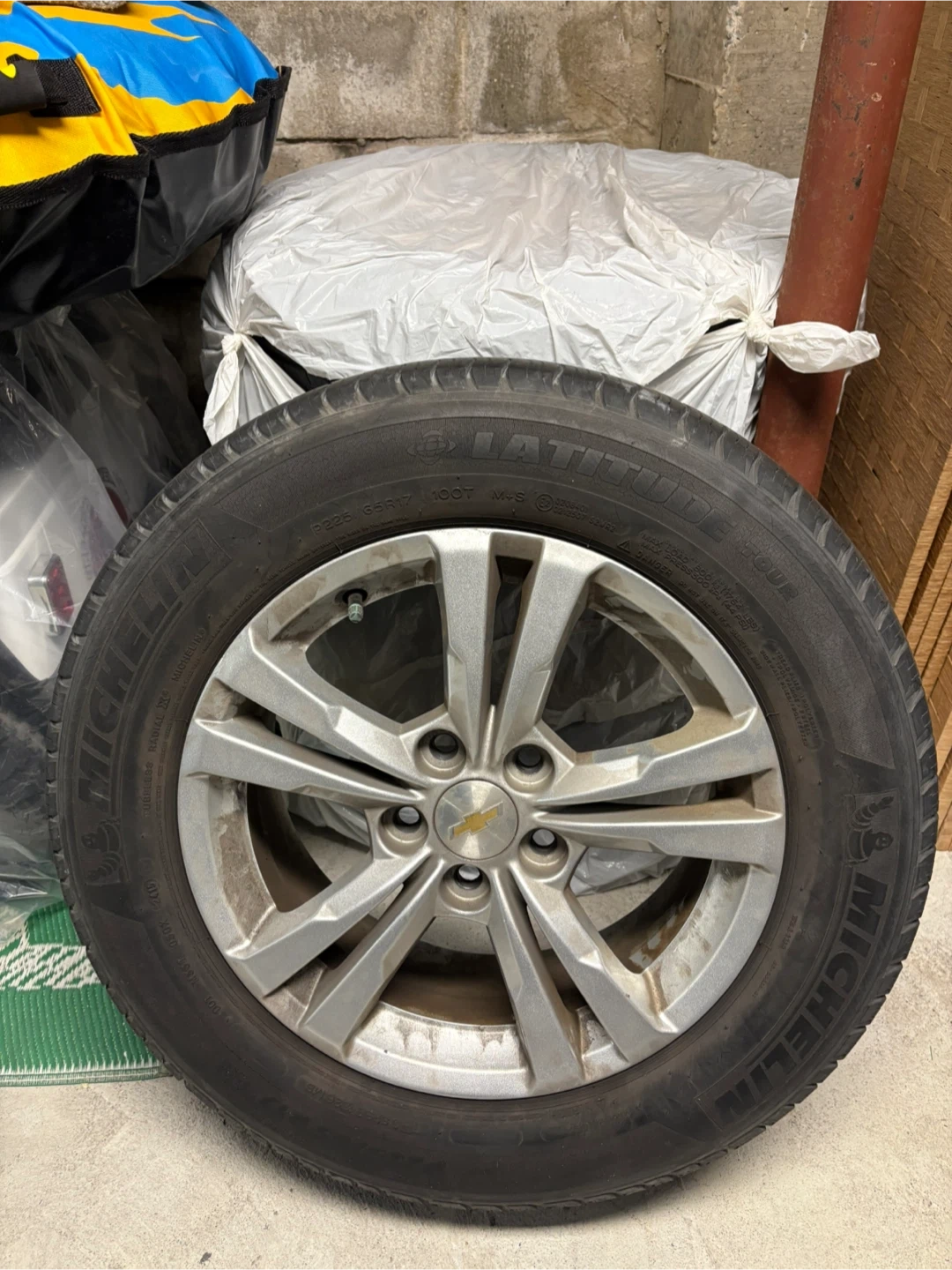 17” Chev. Equinox Alloy Rims with TPMS sensors and decent Michelin latitude tires. Size 225/65R17. Decent all season tires. In really good condition. Asking $400 for the set (4 tires).