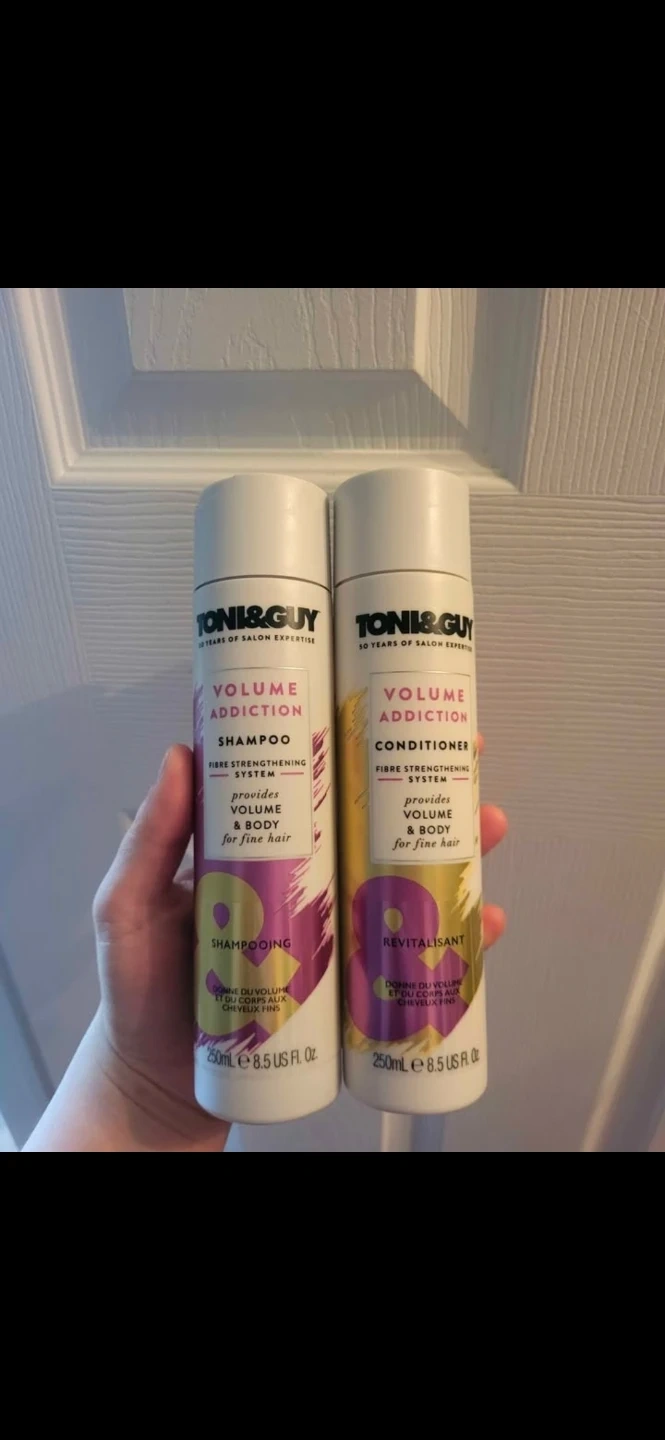This set includes Toni & Guy Volume Addiction Shampoo and Conditioner. Both are formulated with a Fibre Strengthening System. They provide volume and body for fine hair. Each bottle is 250ml (8.5 US Fl. Oz.).