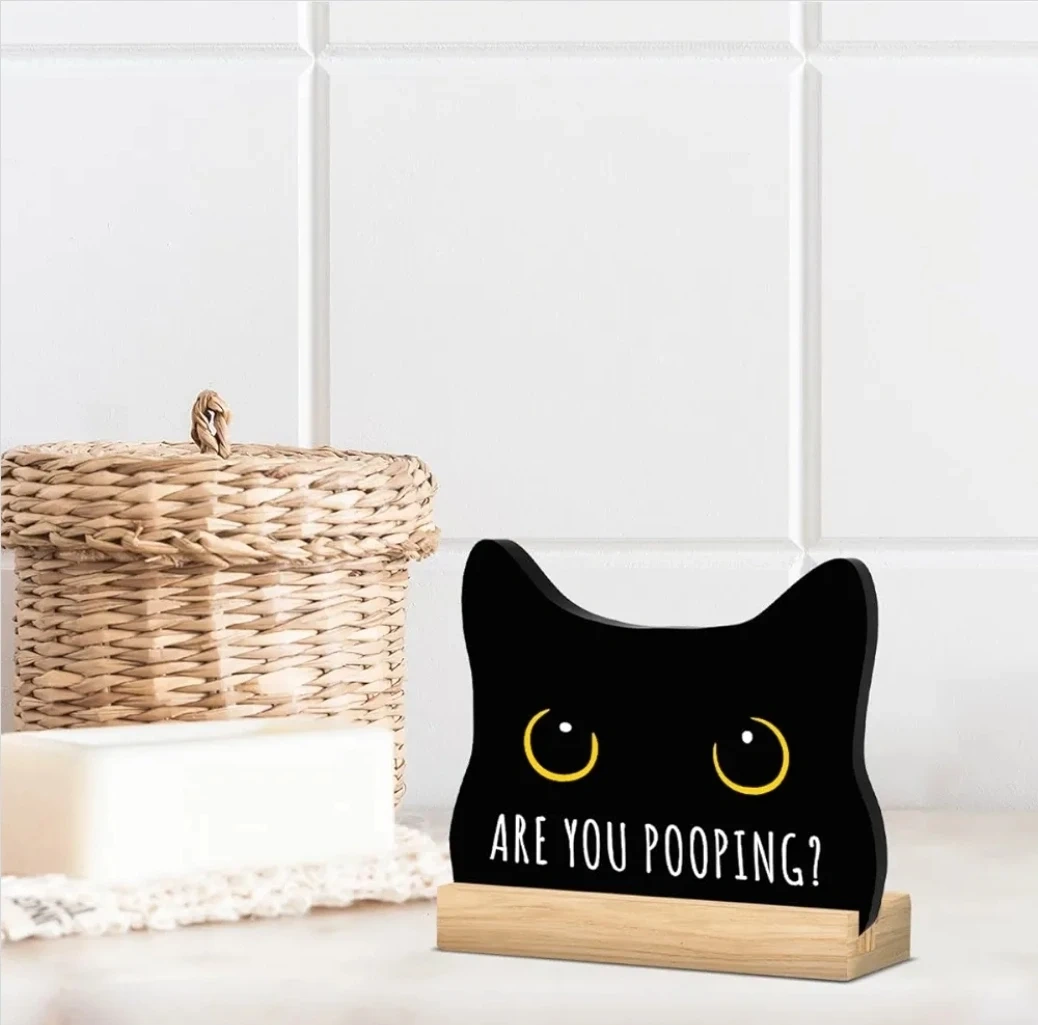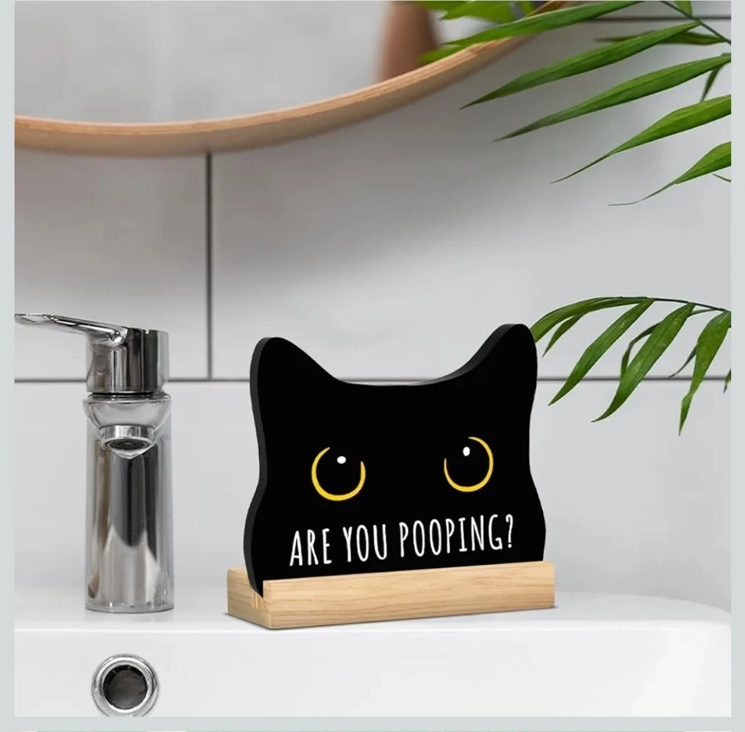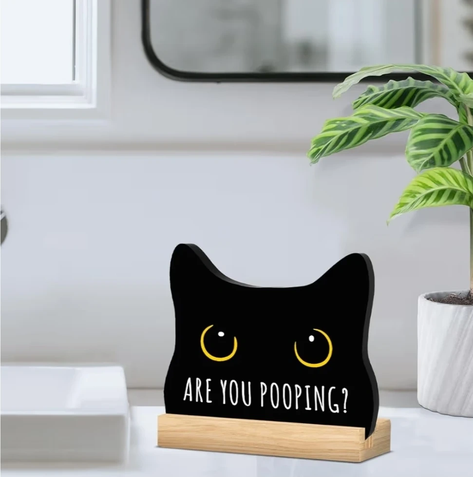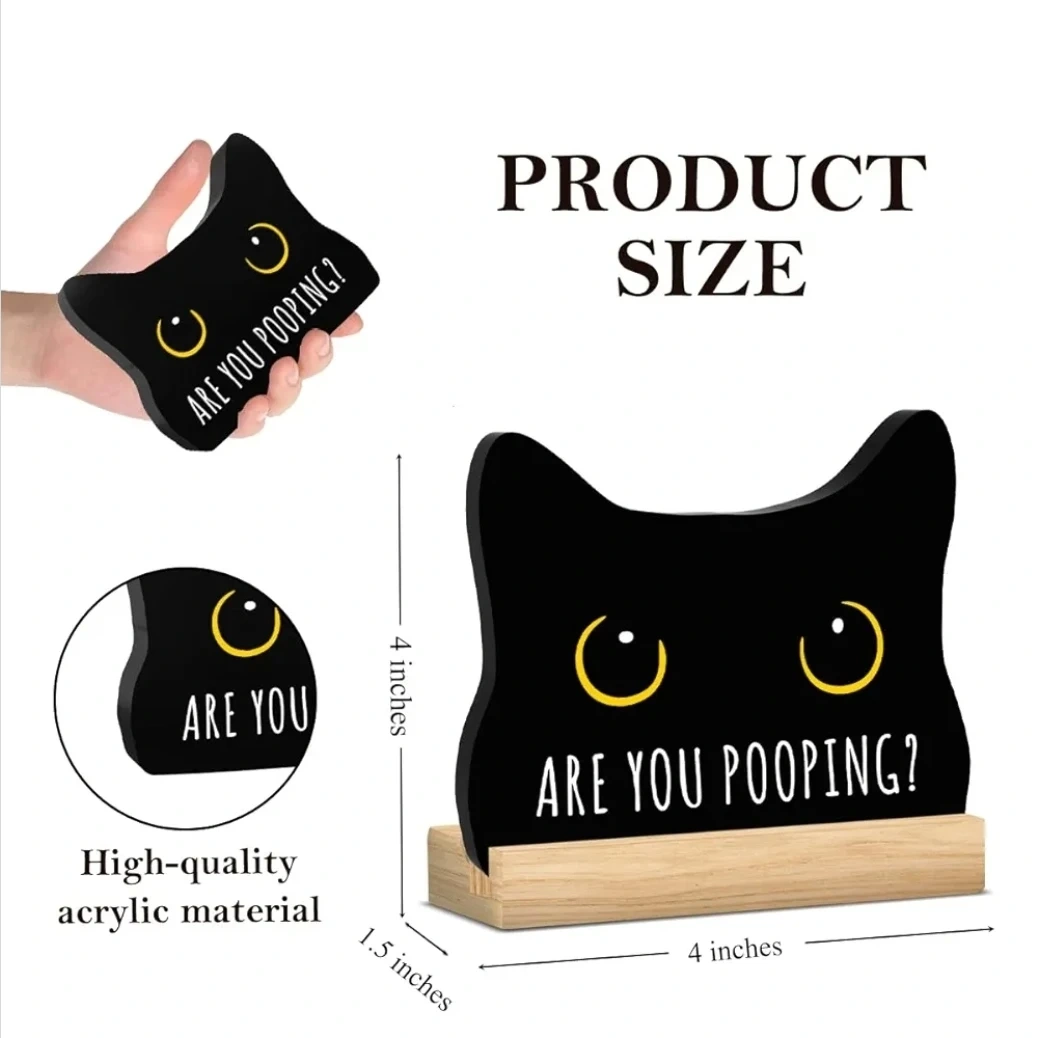 Funny Black Cat Bathroom Sign “Are You Pooping?” Acrylic Decor