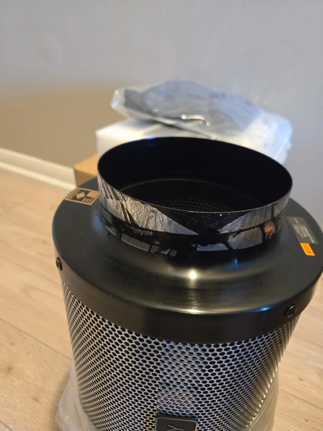 This is an AC Infinity CF-412 carbon filter with pure charcoal. It's designed for mixed flow inline fans. Comes with hanging fixtures and washable cloth cover. Set up and tested, but never used! Has some tape marks around the duct connection from when it was set up, but still in excellent condition. Box was damaged while product was set up. No damage to the actual product. Also have a Phantom LED Pheno 440 grow light and GDF 150-P inline fan (check my other listings). Can do a packed deal of interested!