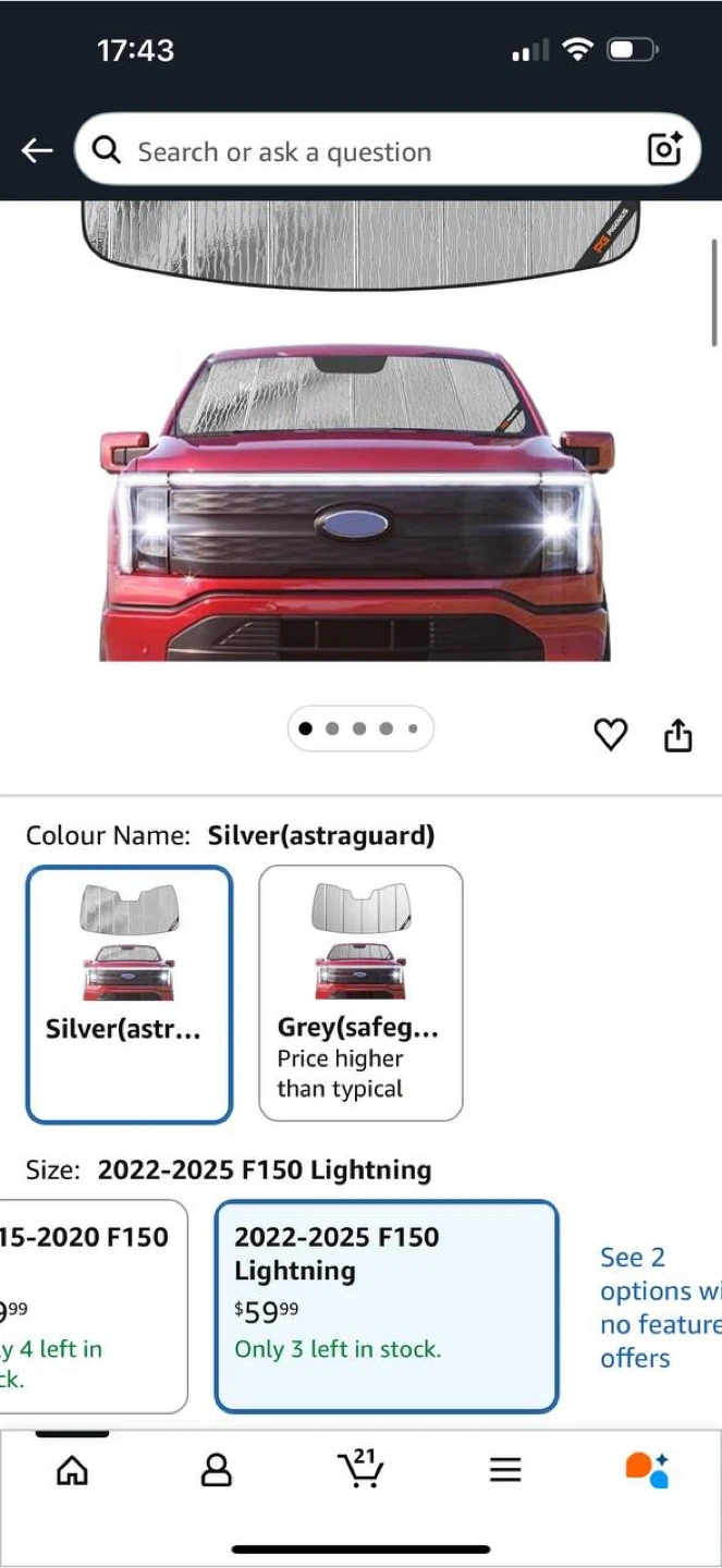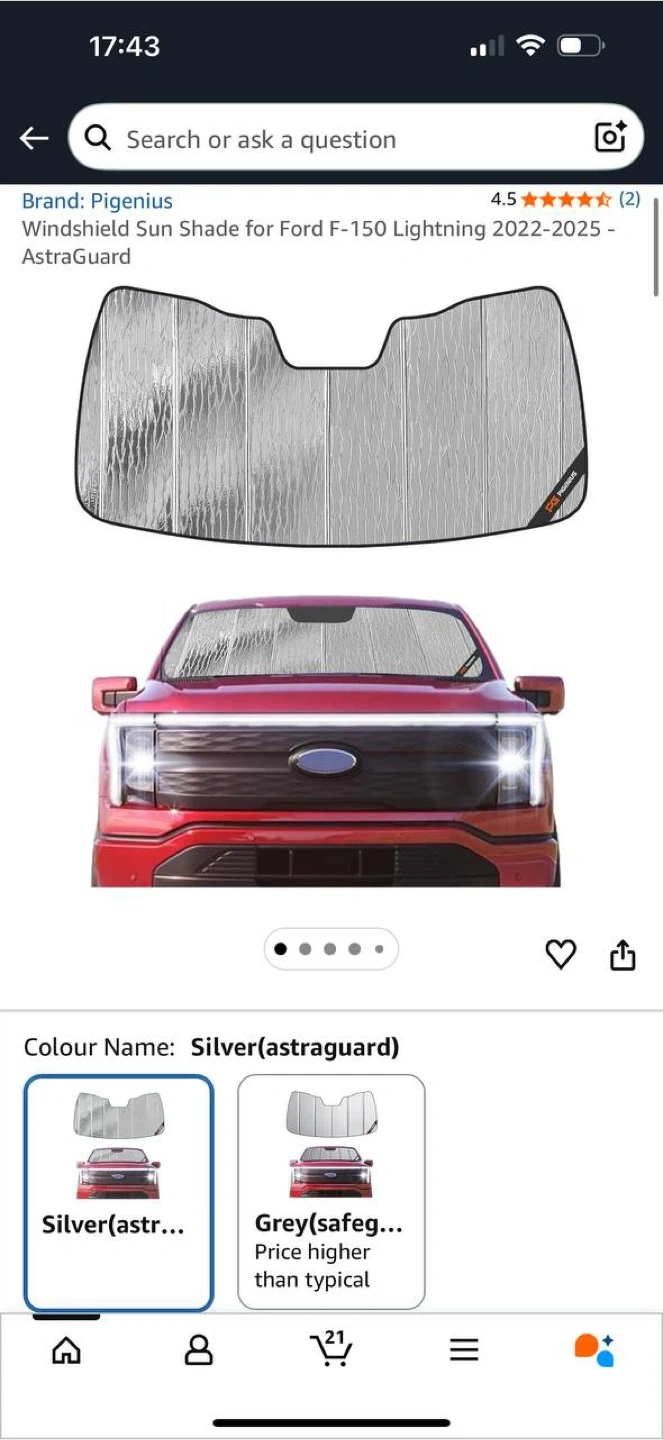 🚘 Pigenius Windshield Sun Shade – Ford F-150 Lightning 2022–2025