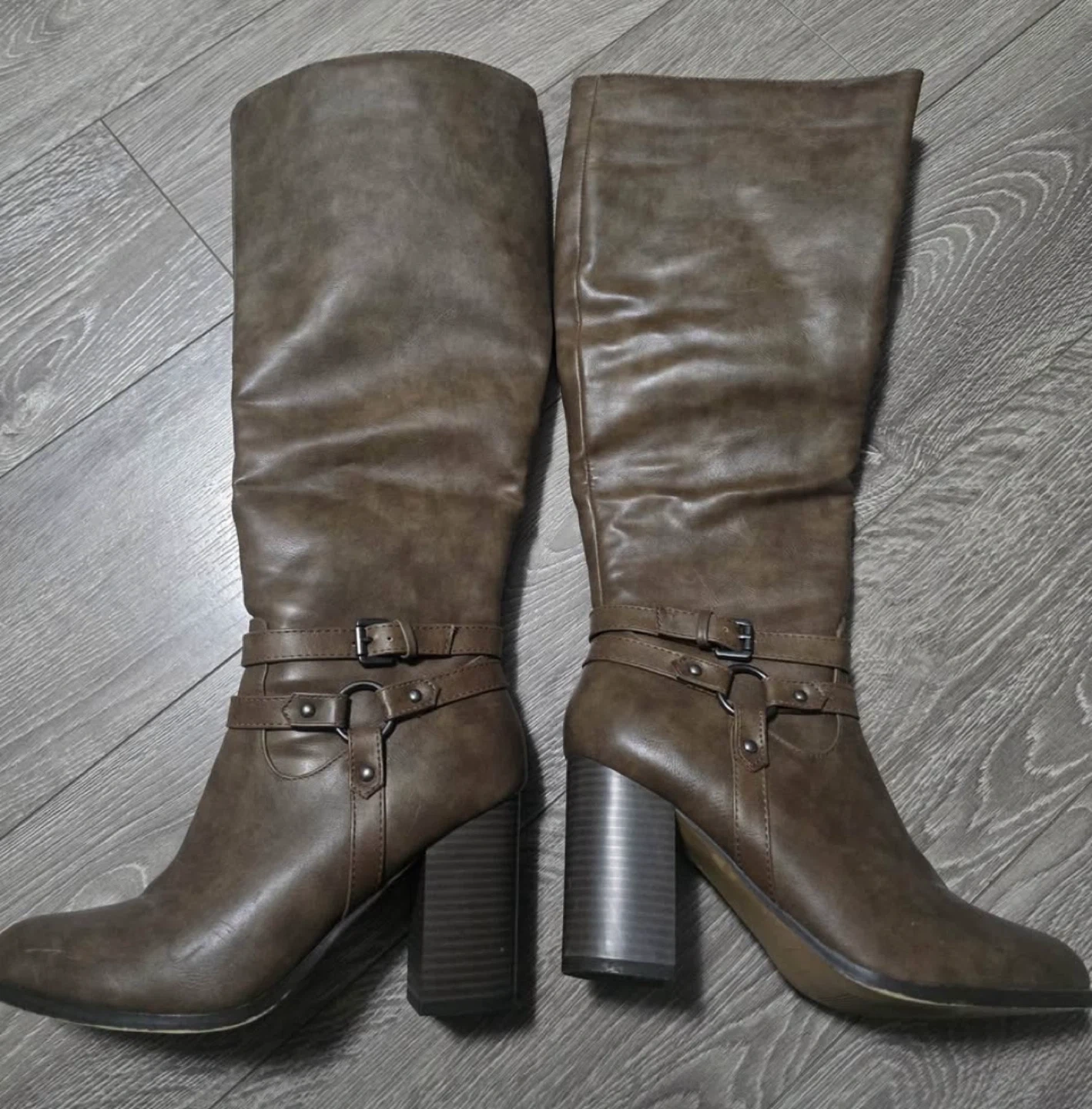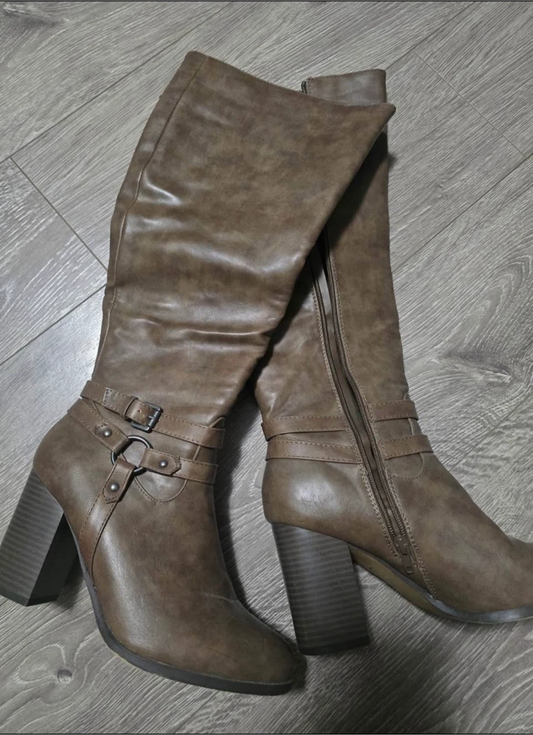 65Only worn once. These are a size 9 and feature a stylish buckle detail. Perfect for adding a touch of chic to your fall and winter outfits.