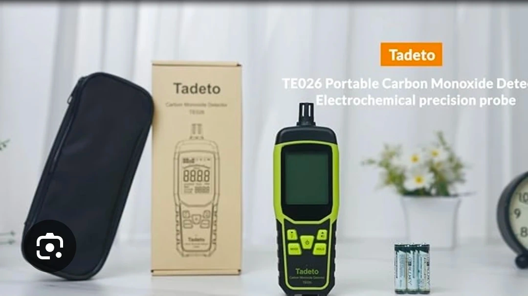 This is a Tadeto TE026 portable carbon monoxide detector. It has an LCD backlit display and an electrochemical precision probe. The measuring range is 0-1000PPM. It's useful for monitoring air quality in your home.