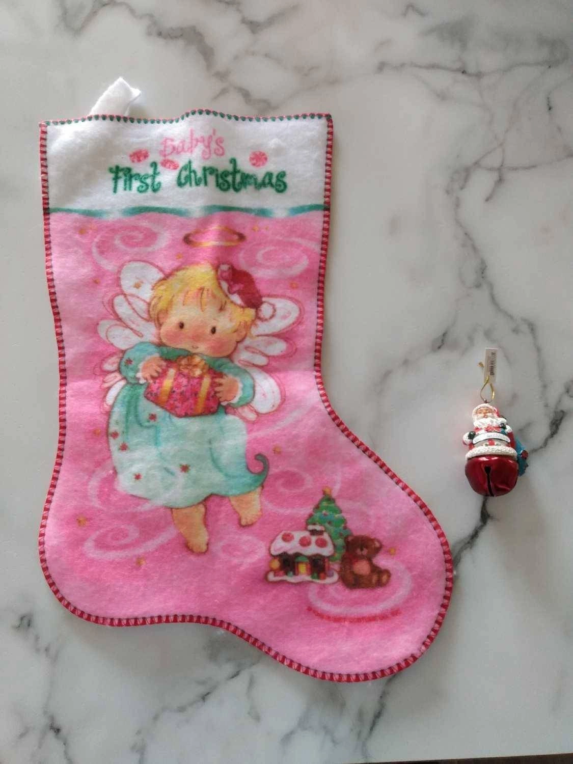 A sweet little stocking to celebrate baby's first Christmas! It's pink and features an angel. $5.00