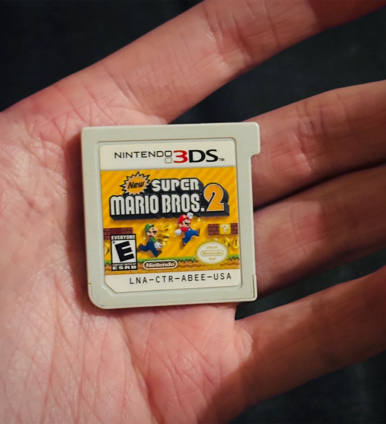It comes with the Super Mario Bros. 2 game cartridge, stylus Pen, and a charging adapter