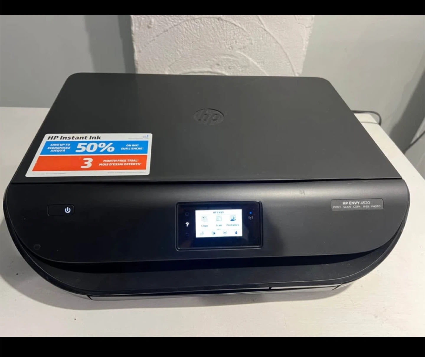 HP ENVY 4520 all-in-one printer. It prints, scans, copies, and has web and photo capabilities. This black printer is great for home use. It's compatible with HP Instant Ink.