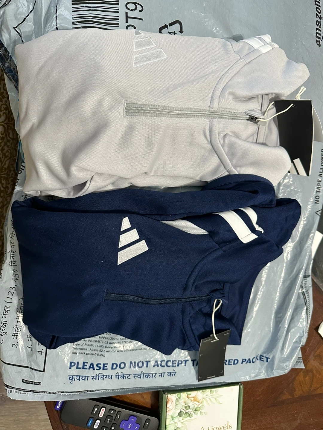 Two Adidas half-zip track jackets, one in black and one in green. Both feature the iconic three stripes on the sleeves and the Adidas logo. They're in new condition with tags attached. S/M size. Can be bought separately or as a set of 2. One for 25/- both for 40/- . Pick up border of Brampton and Caledon. 5 mins off Hwy 410- Mayfield exit