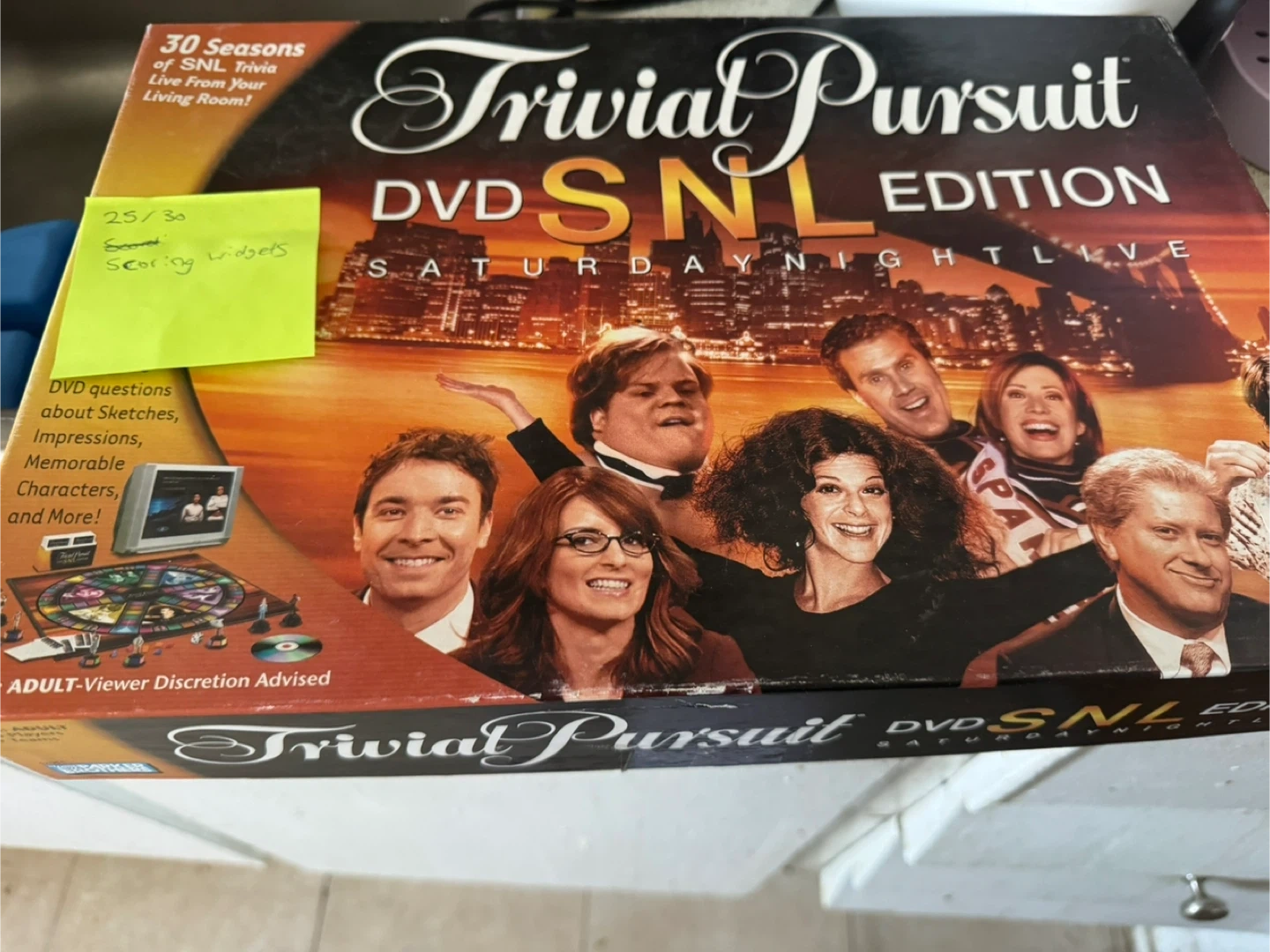 Trivial Pursuit DVD Saturday Night Live Edition. Features 30 seasons of SNL trivia with questions about sketches, impressions, and characters. Adult-Viewer Discretion Advised.