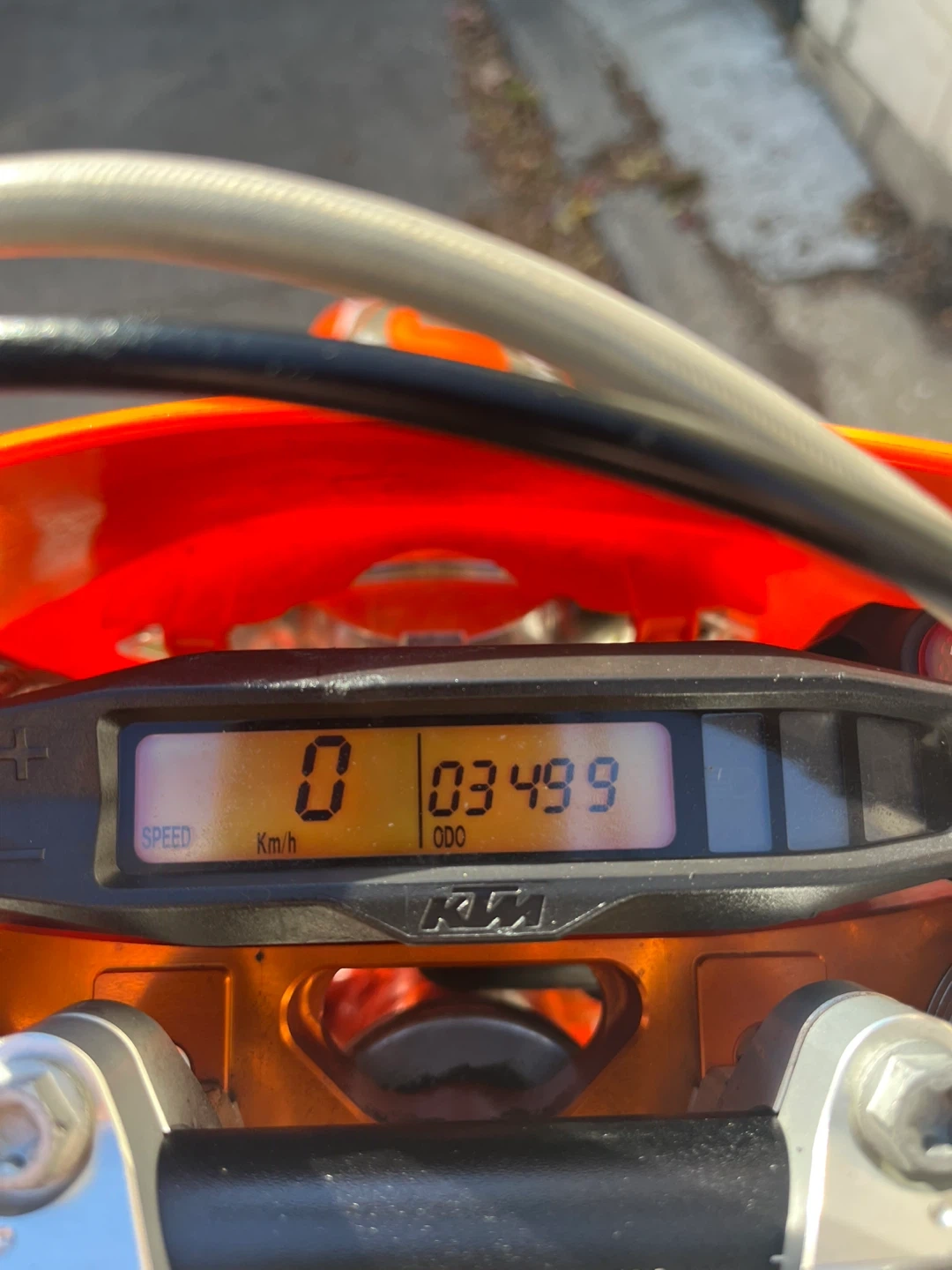 This is a KTM 300 EXC Erzbergrodeo dirt bike. It has 3499 km on the odometer. Professionally rebuilt @ recommend 150 hrs