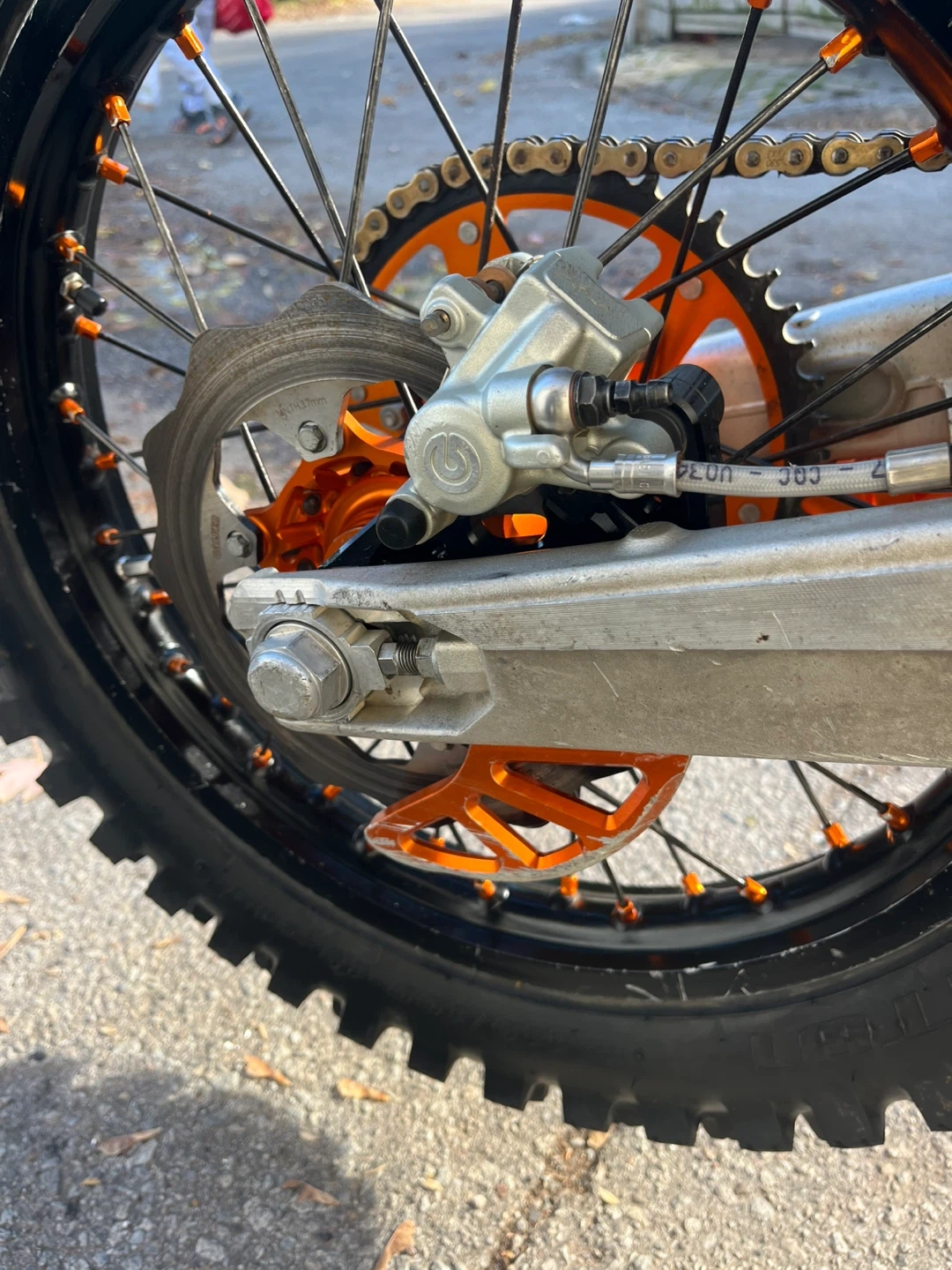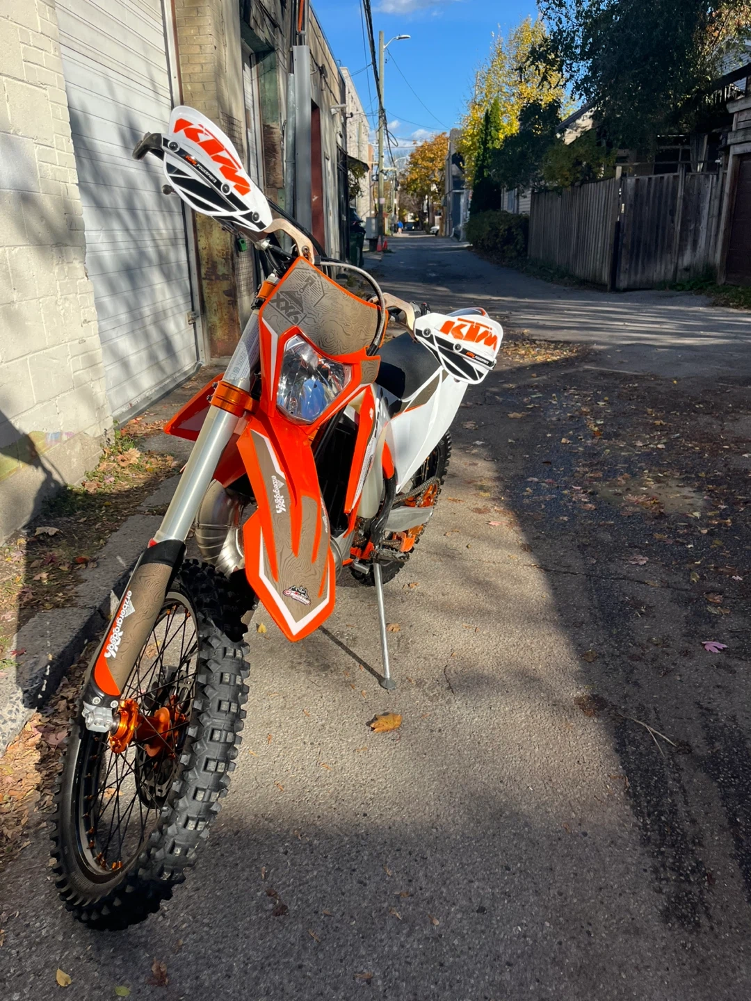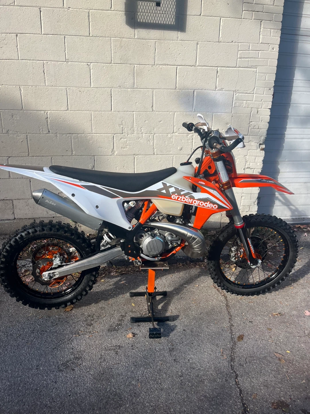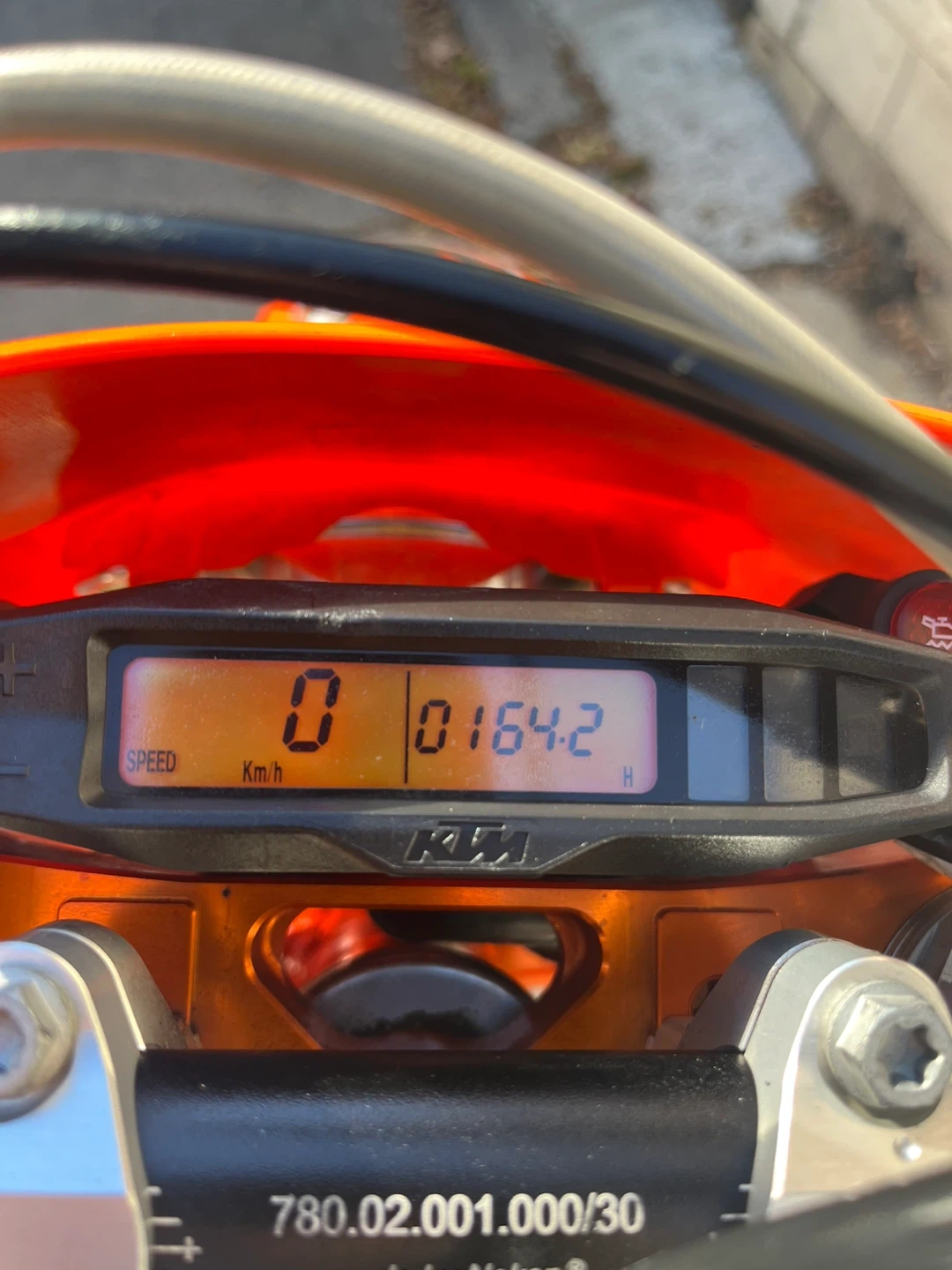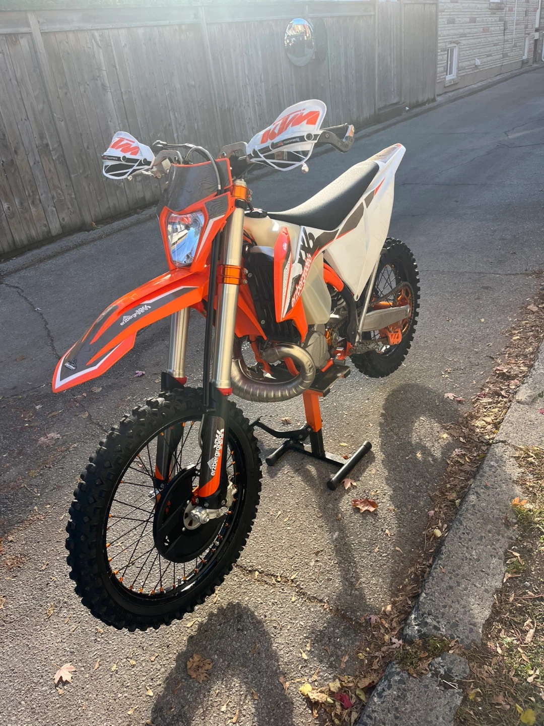 This is a KTM 300 EXC Erzbergrodeo dirt bike. It has 3499 km on the odometer. Professionally rebuilt @ recommend 150 hrs