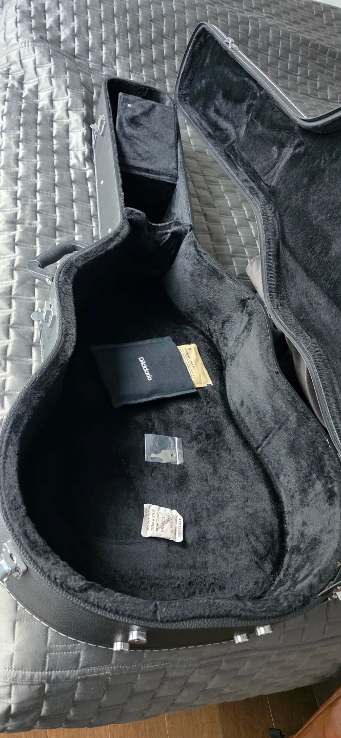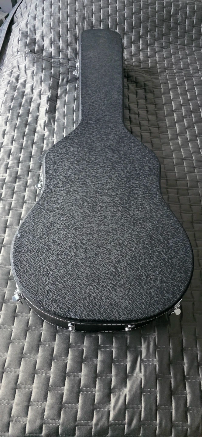 Fender hard case for acoustic guitars. It's black with a plush interior. Comes with latches and a handle. Perfect for transporting or storing your instrument!