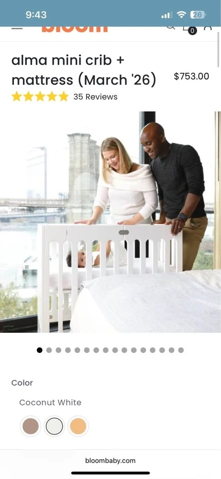 Alma Mini Crib + Mattress + mesh + waterproof cover + sheets