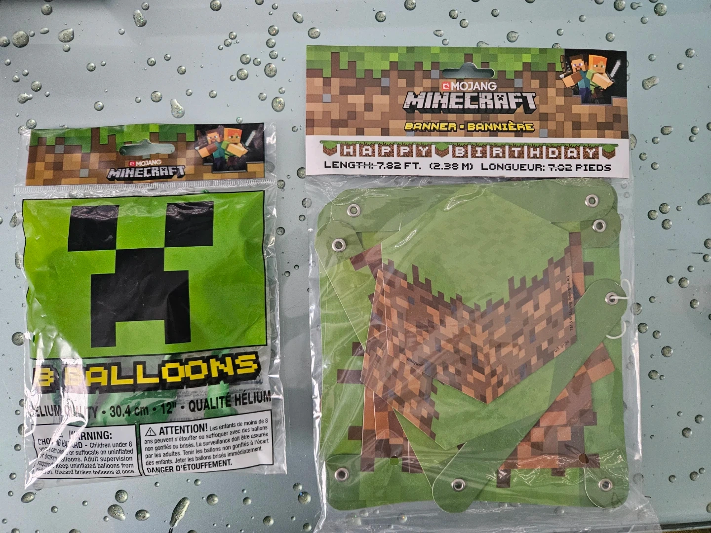 Selling a set of Minecraft-themed party decorations! Includes a pack of 8 Creeper balloons and a Happy Birthday banner. Perfect for a Minecraft-themed birthday party