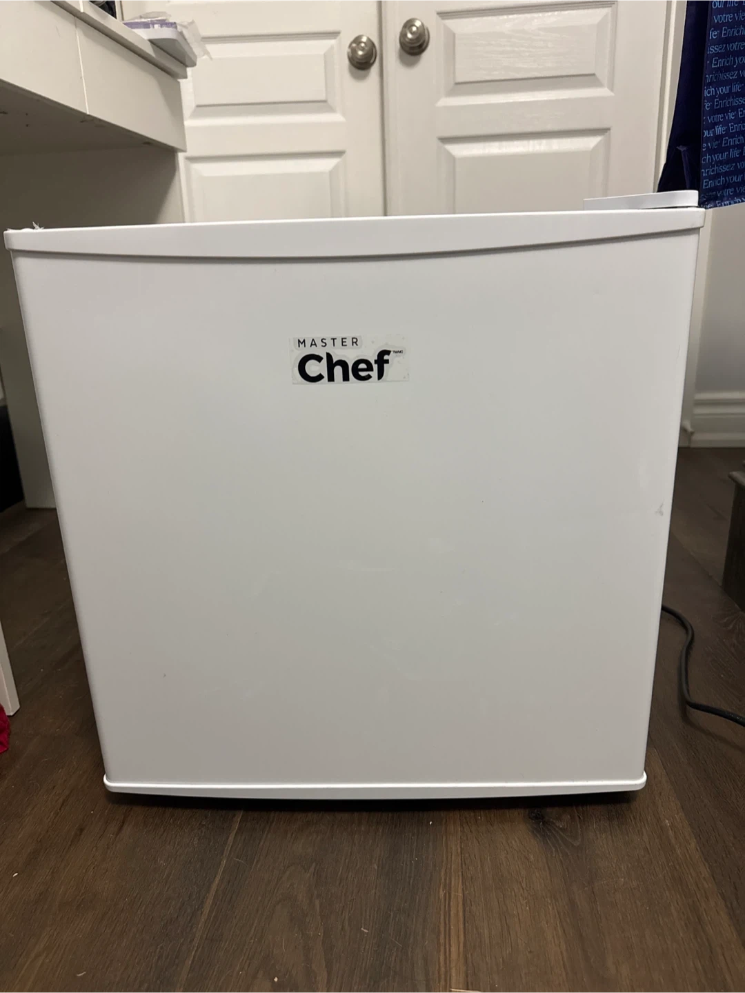Selling a mini fridge from Master Chef! It's white and in great condition. Perfect for a dorm room, office, or just to keep your drinks cold in a small space