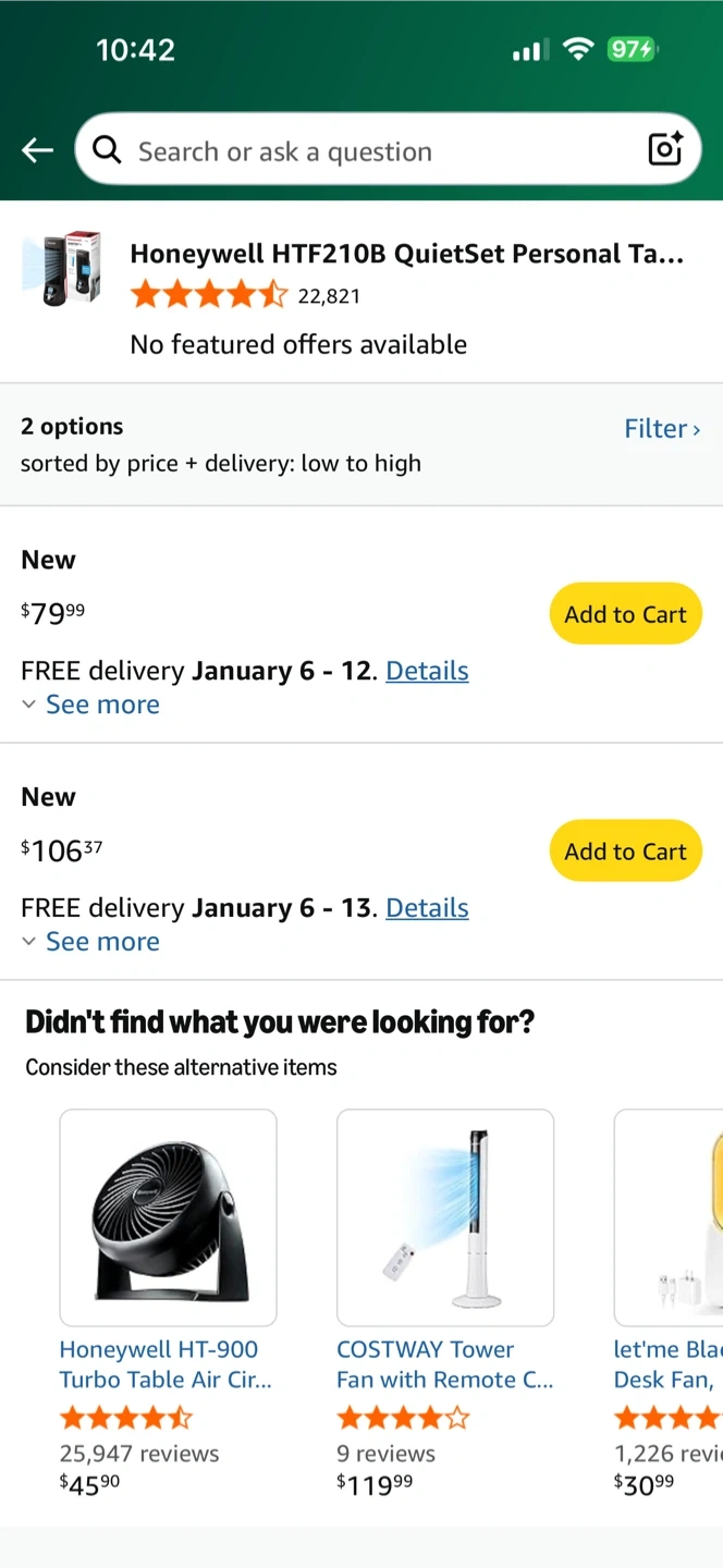 Honeywell QuietSet 4 Oscillating Personal Fan