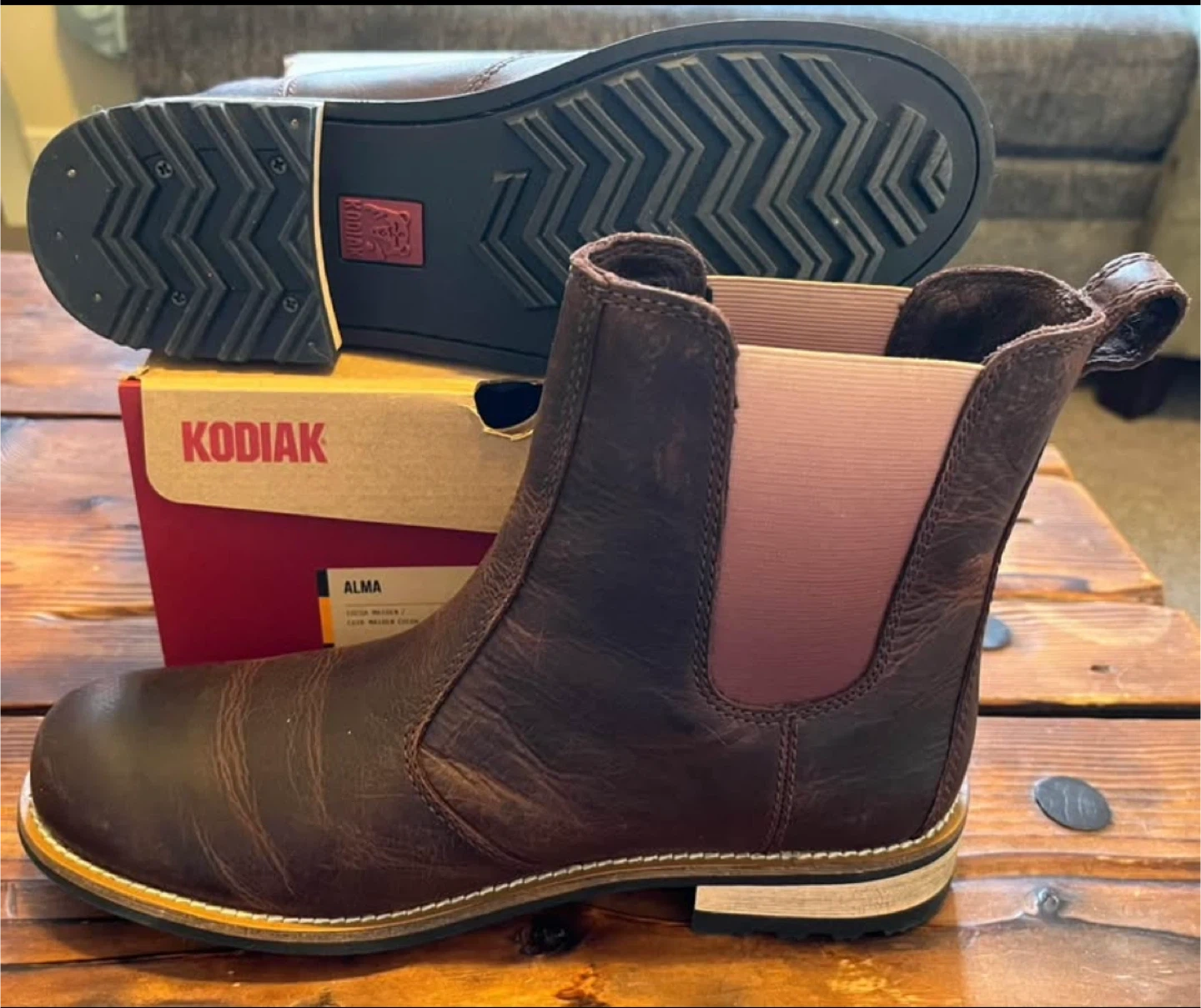 10Selling a pair of Kodiak Alma women's Chelsea boots in a lovely brown leather. These are a size 8.5 US and come with the original box. Great everyday boots!