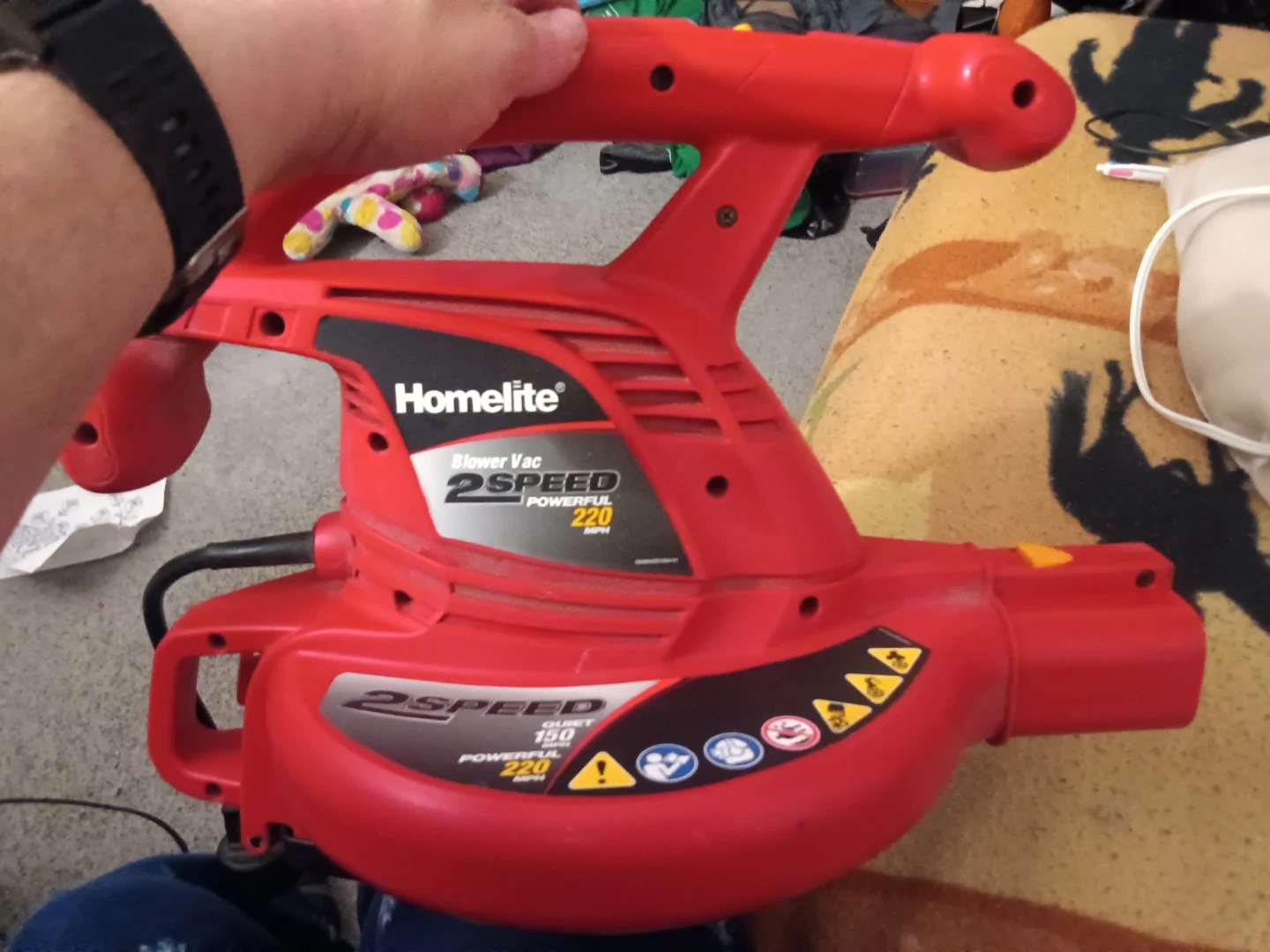 This is a red Homelite 2-Speed Blower Vac. It's powerful with 220 MPH air speed and quiet at 150 MPH. Includes a blower tube.great for blowing snow off sidewalk on leaves or cut grass and my price is firm and is plugged in
