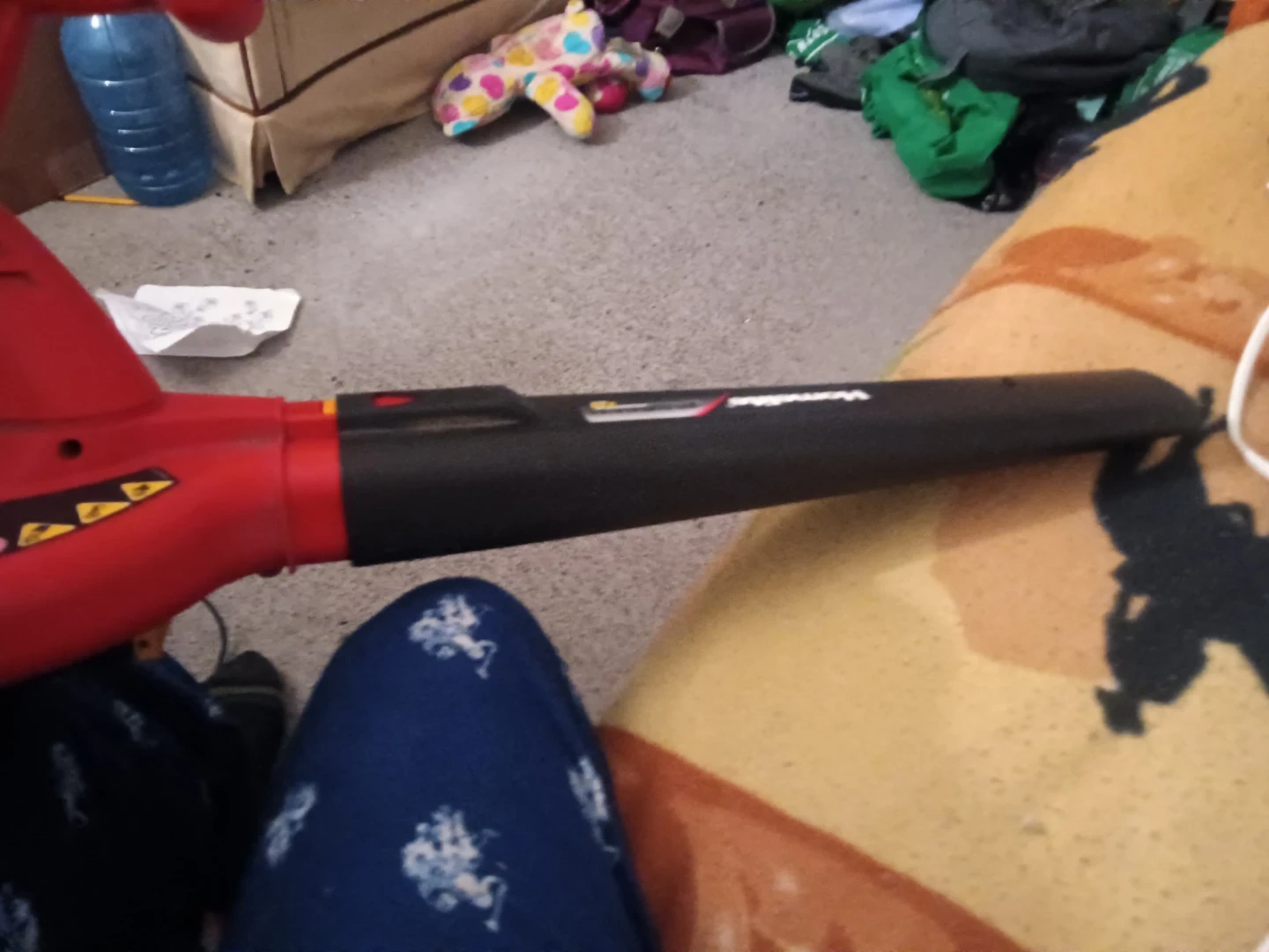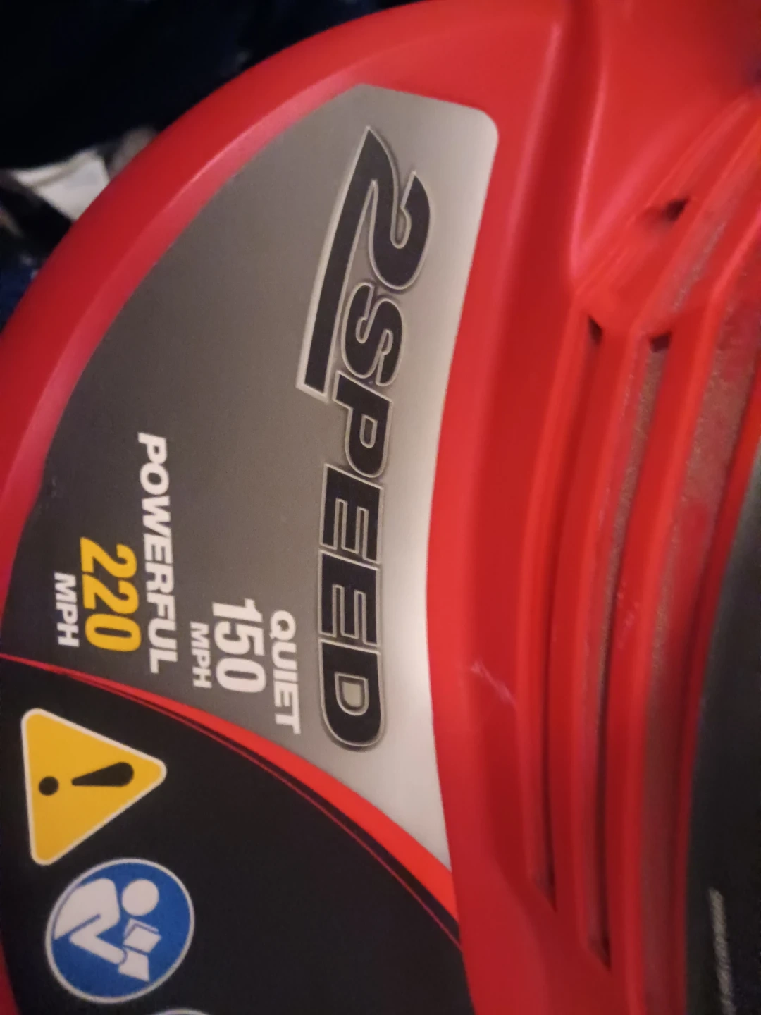 This is a red Homelite 2-Speed Blower Vac. It's powerful with 220 MPH air speed and quiet at 150 MPH. Includes a blower tube.great for blowing snow off sidewalk on leaves or cut grass and my price is firm and is plugged in