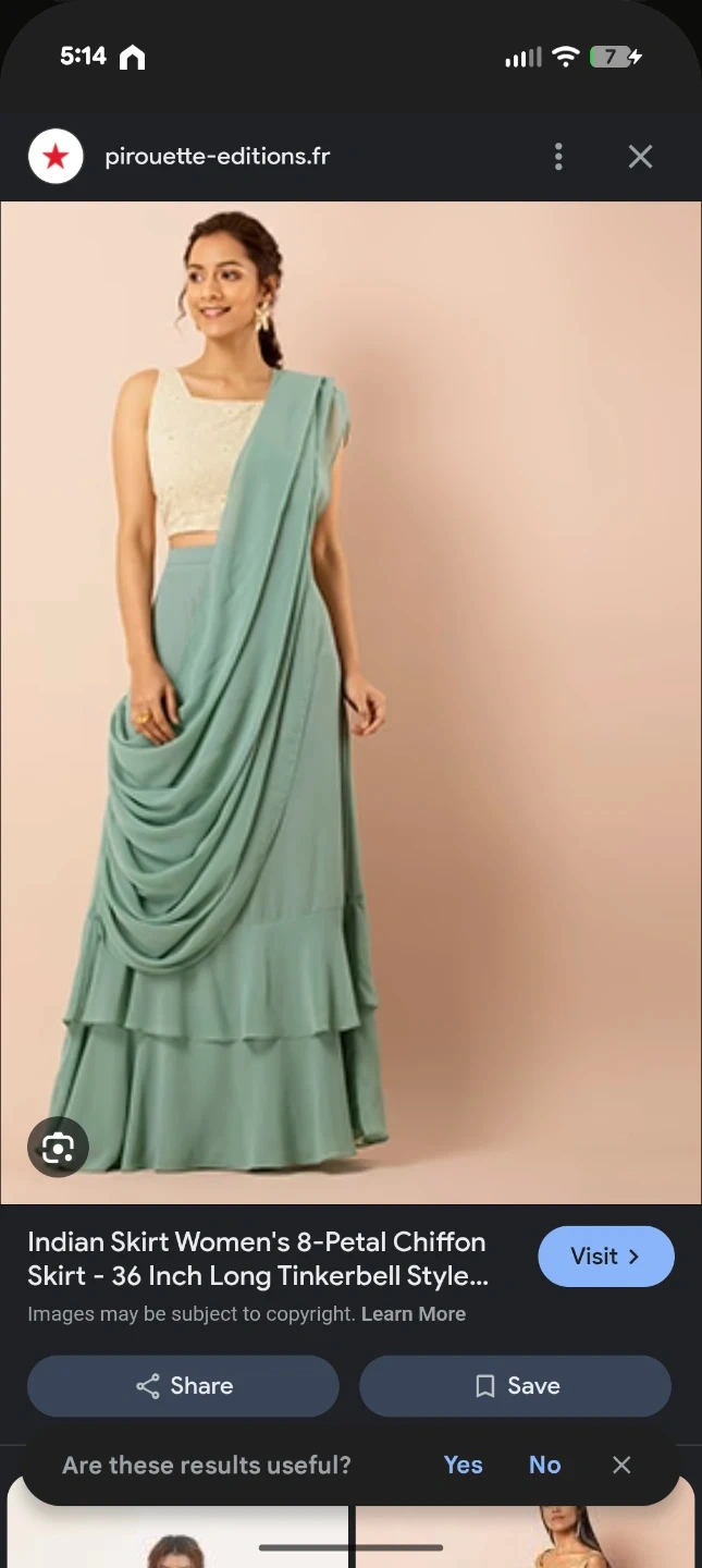 This is an 8-petal chiffon skirt in sage green. It's 36 inches long and features a Tinkerbell style. The skirt has a tiered, ruffled design.