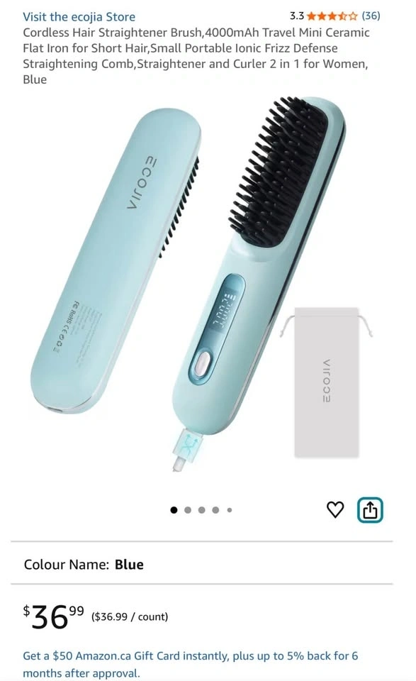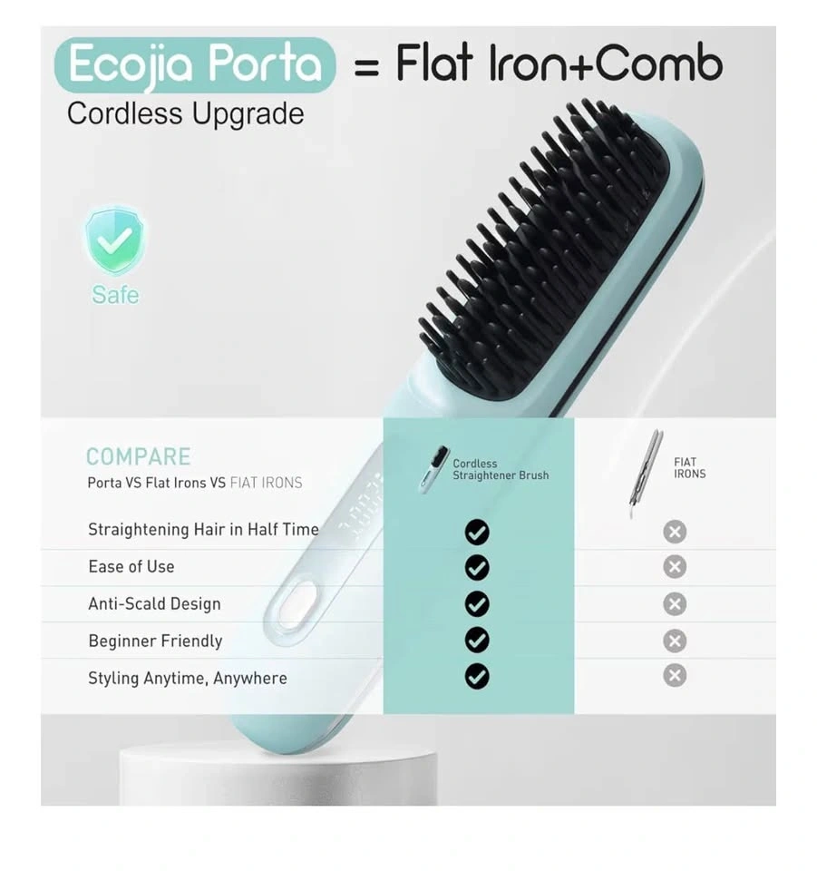 Cordless Hair Straightener Brush Travel Size