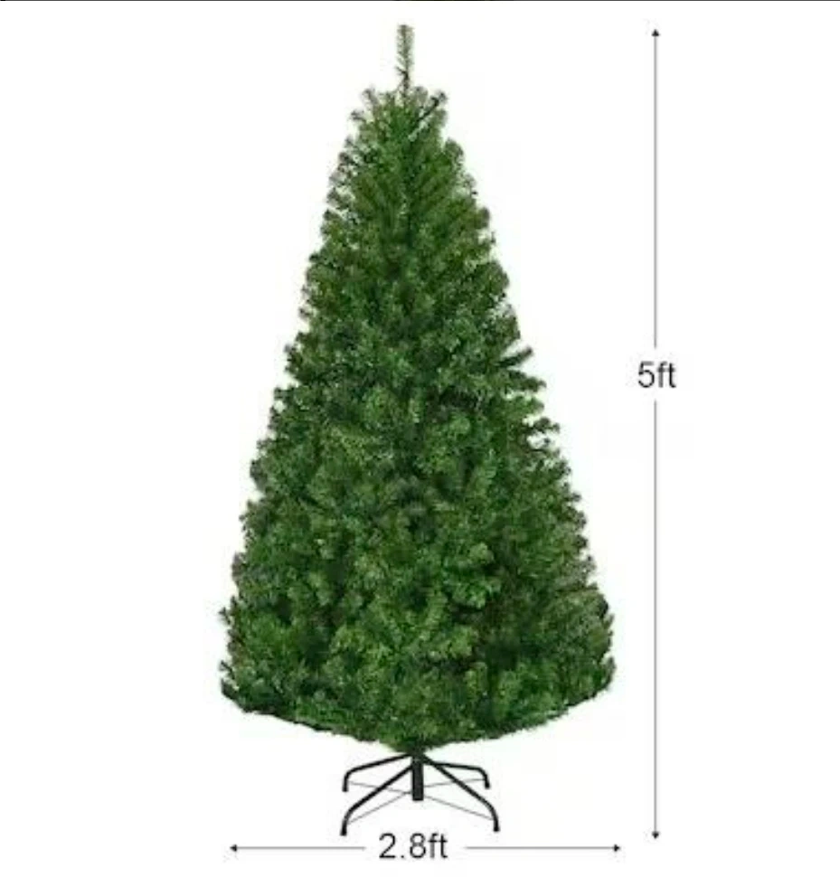 Get ready for the holidays with this 5ft artificial Christmas tree! It's pre-lit with colourful lights to bring the Christmas spirit to your home. The tree is 2.8ft wide at the base.