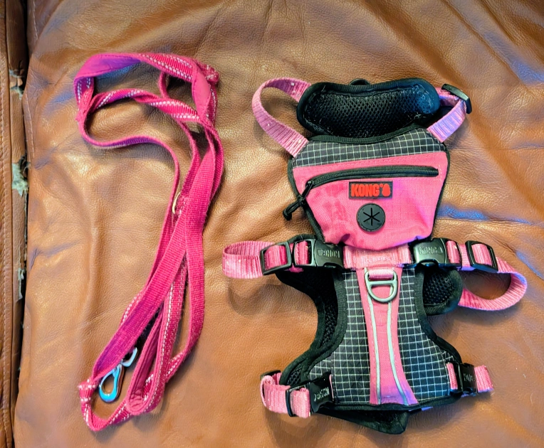 42Selling a Kong dog harness and leash set in pink! The harness is a comfortable and secure fit for your furry friend. It features a sturdy construction and adjustable straps for a customized fit. The matching leash is durable and perfect for walks. Great for small to medium dogs local pu oshawa