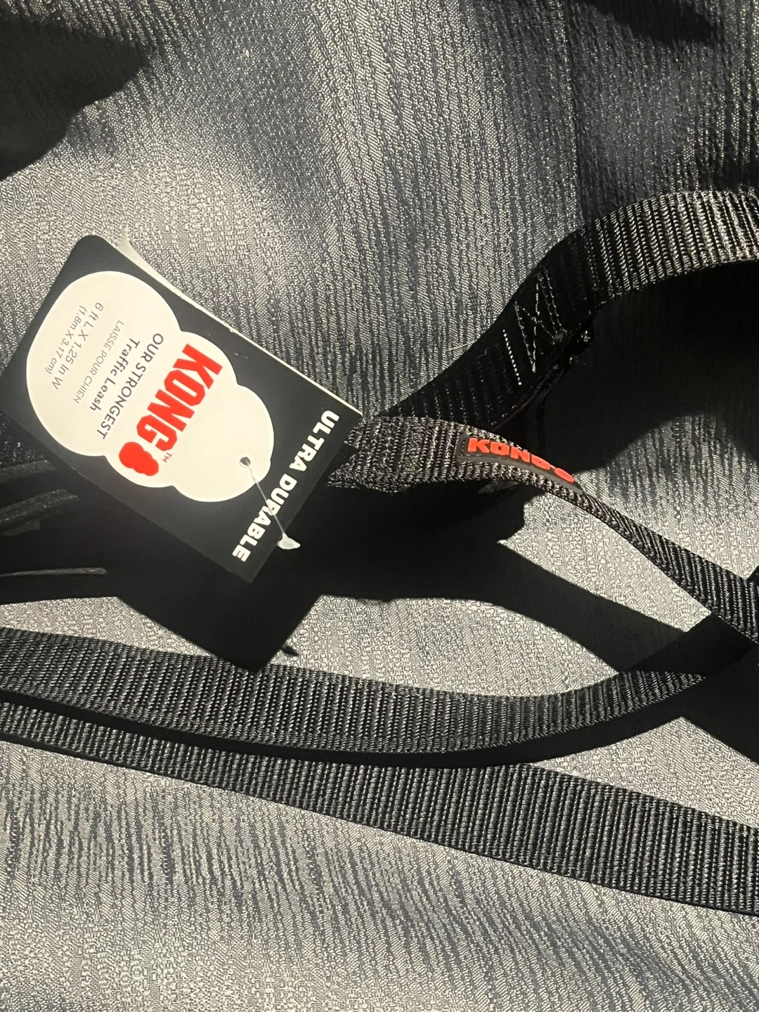 Selling a brand new KONG Traffic Leash! This leash is black and measures 6 ft in length. It's designed to be ultra durable and is KONG's strongest traffic leash for large power chewers!