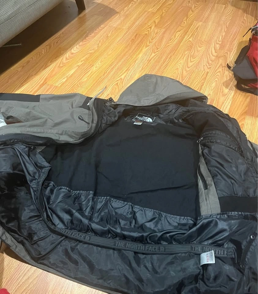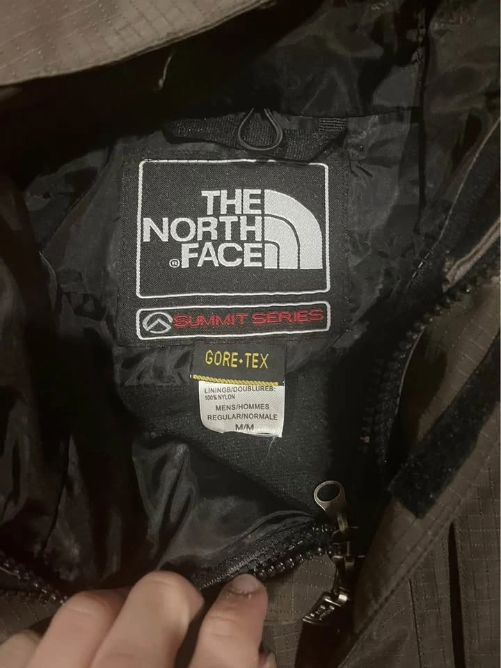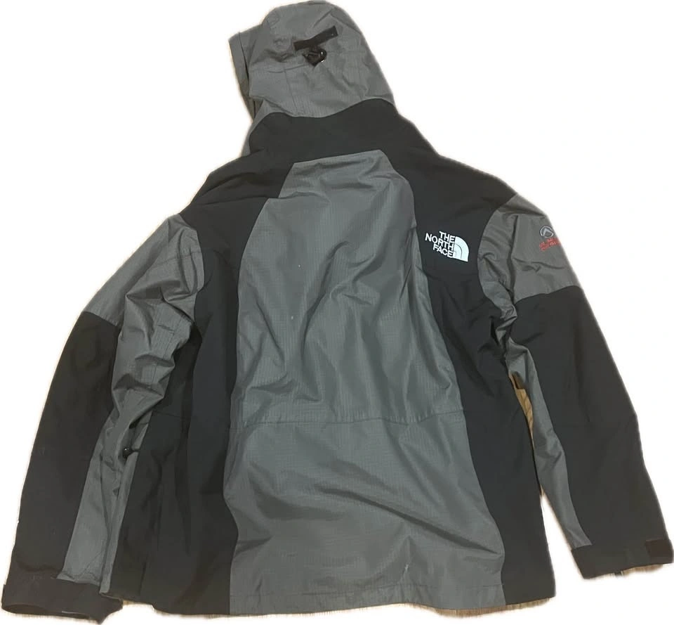 Durable North Face Summit Series jacket. Men's size M. Features Gore-Tex for waterproof protection. Gray and black color block design. Made with 100% nylon lining. Great for outdoor activities. Please note: the insert pin for the zipper is missing, as shown in the pictures. The main zipper still works, and there's Velcro to secure the second layer. Primary pickup is at Tim Hortons – 18682 Fraser Hwy #401.