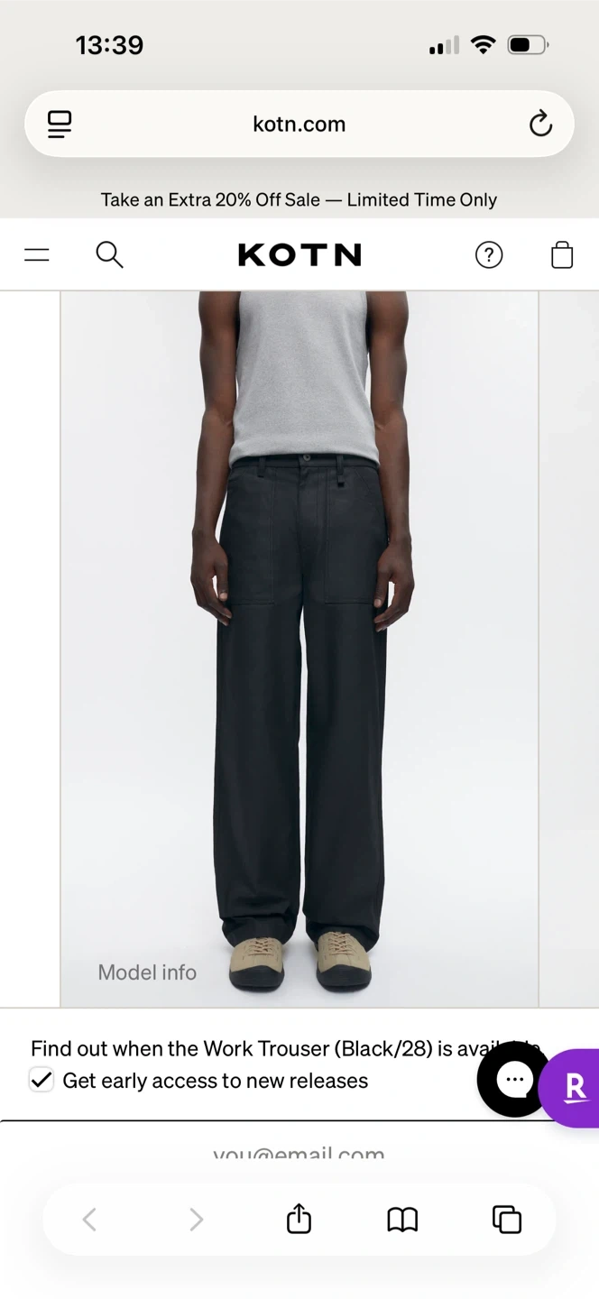 10Selling a pair of brand new KOTN Work Trousers in black! Only tried on.