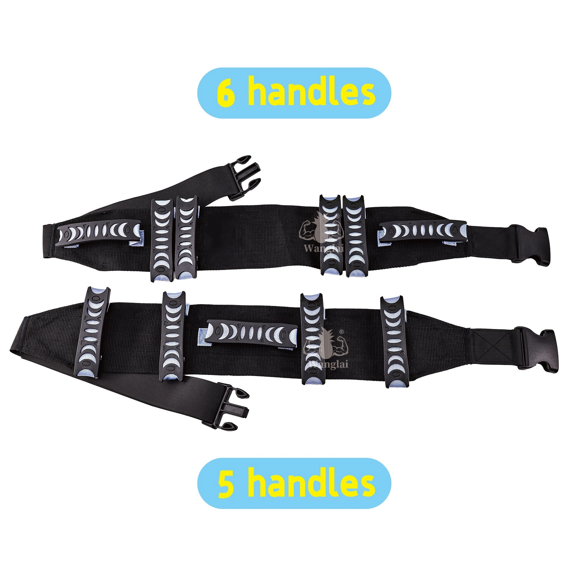 7 Ergonomic Handles When transferring a patient or beloved family, the angle, direction, or strength are different every time. In order to adapt to the angle needs of different people, 7 comfortable anti-slip handles are designed reasonably. Four vertical handles and three horizontal handles of the transfer belt allow you to choose the best leverage point, transferring patients safely and effectively. The gait belt with handles is a thoughtful nursing aid.