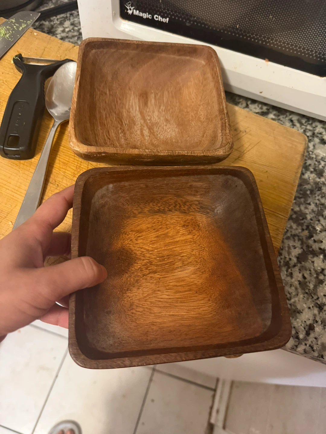 1 / 41 / 4Buy & SellSet of 2 Wooden Square BowlsSet of 2 Wooden Square Bowls$5This set includes two wooden square bowls. They're made from wood and have a natural finish. Perfect for snacks or small dishes!ConditionGoodWHERE TO MEETsherbourne stationView MapSELLERverifiedSounaN St. James Town1000+773 reviews3 chats·3 favorites·53 viewsSEND CHAT TO SELLERHi Souna! I’m interested in your listing.Hi Souna! I’m interested in your listing.Get the Karrot app to chatSign In to chat
