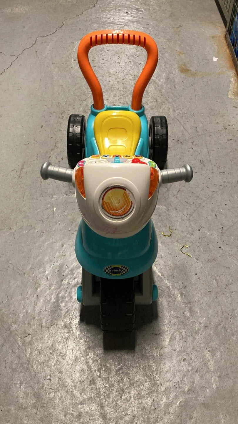 This VTech Ride and Learn Motorcycle is a fun ride-on toy for little ones. It's made of durable plastic and features colourful buttons that play music and sounds. The motorcycle has a push handle for parental assistance. It's great for developing balance and coordination.