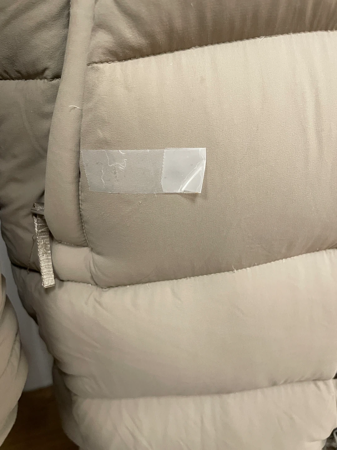 Selling a TNA Super Puff Long coat in a neutral colour. I am selling it for this price because there is a small cut near the pocket, see photo 6. I put a tape over it to ensure that the down doesn’t go through (see photo 7). Please review and assess if this is something you are willing to get repaired (maybe check with tailors if they can do it and what price).