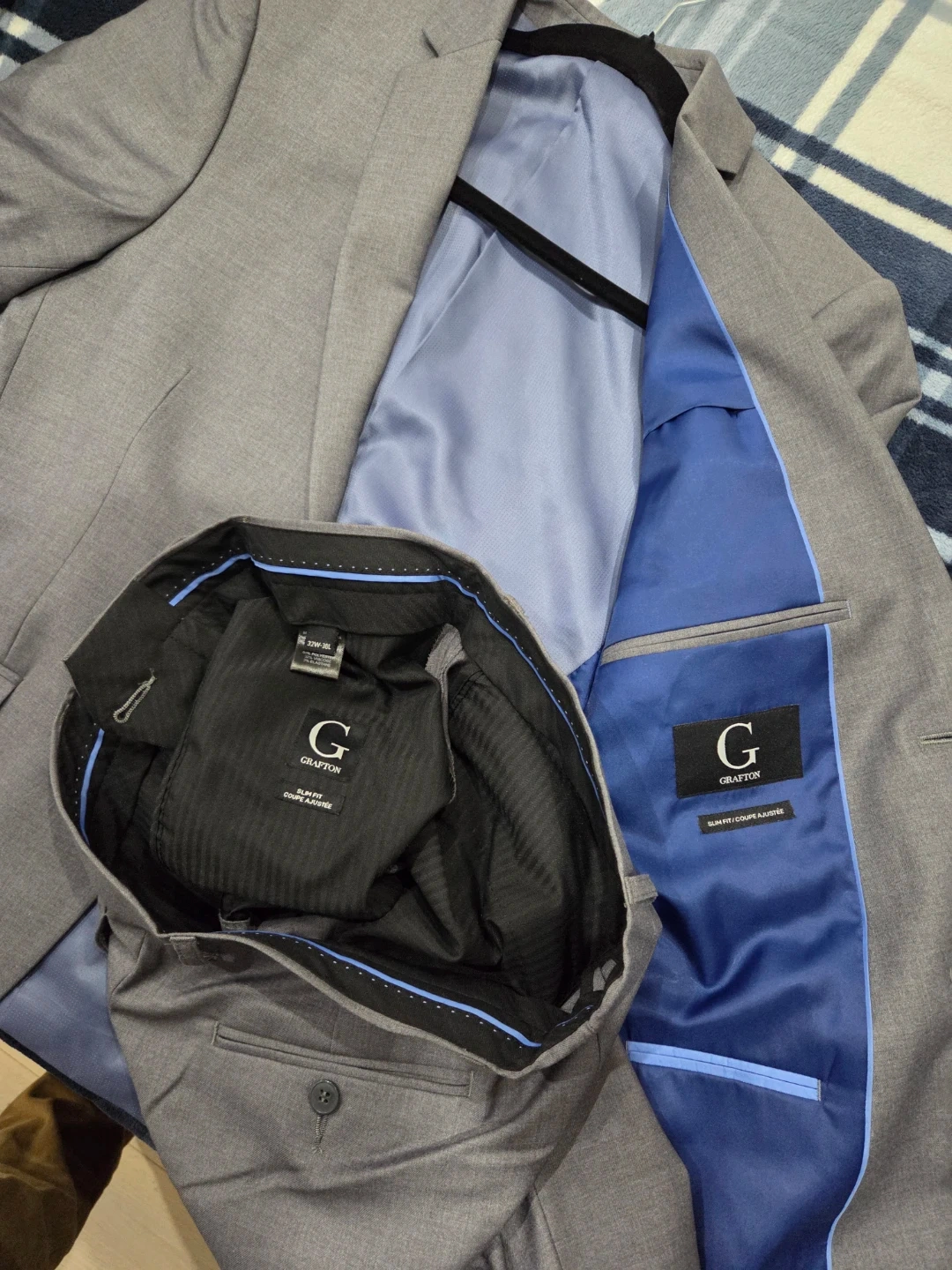 Selling a Grafton men's suit in a stylish grey colour. It's in great condition and ready for a new owner. Perfect for any formal occasion! Size 32 Waist 30 Length.