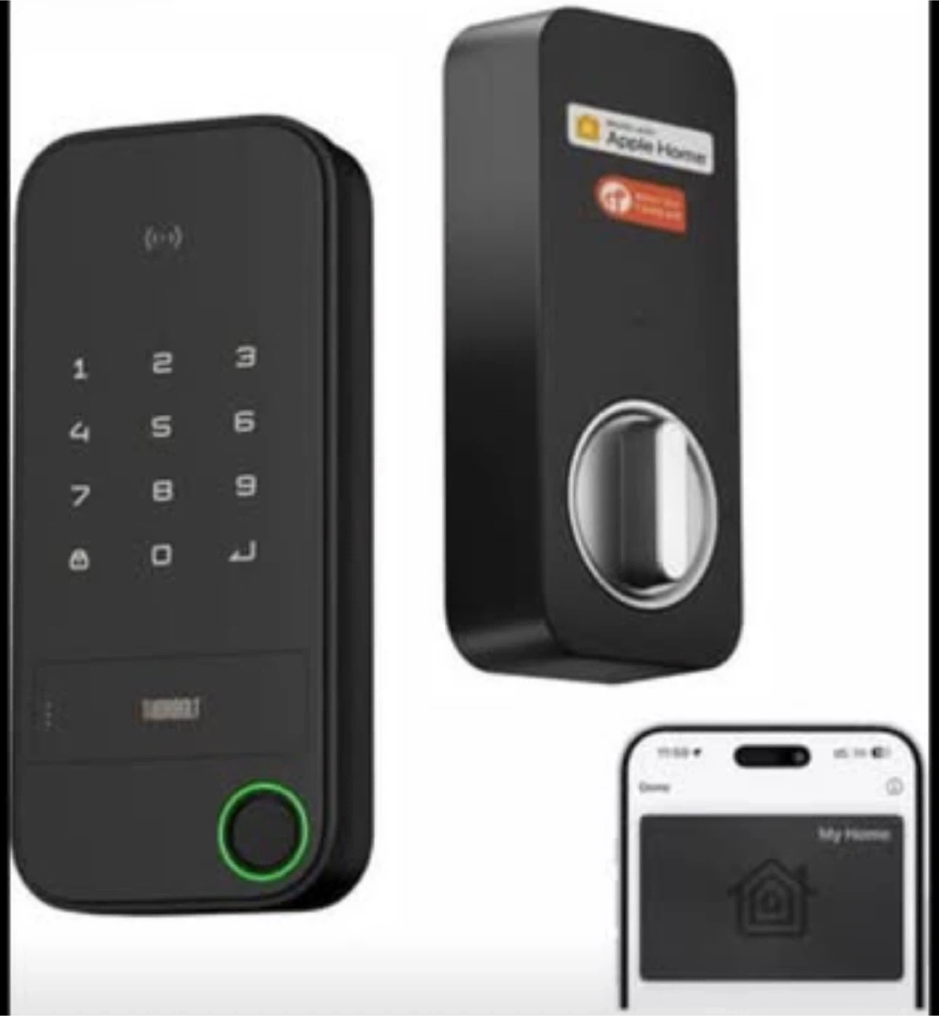 X1 Apple Home Key Lock, iOS ONLY Smart Keyless Entry HomeKit Door Lock with Fingerprint, Keypad Deadbolt Lock Works with HomeKit Over Thread (Border Router Required), IP65 Weatherproof, Black