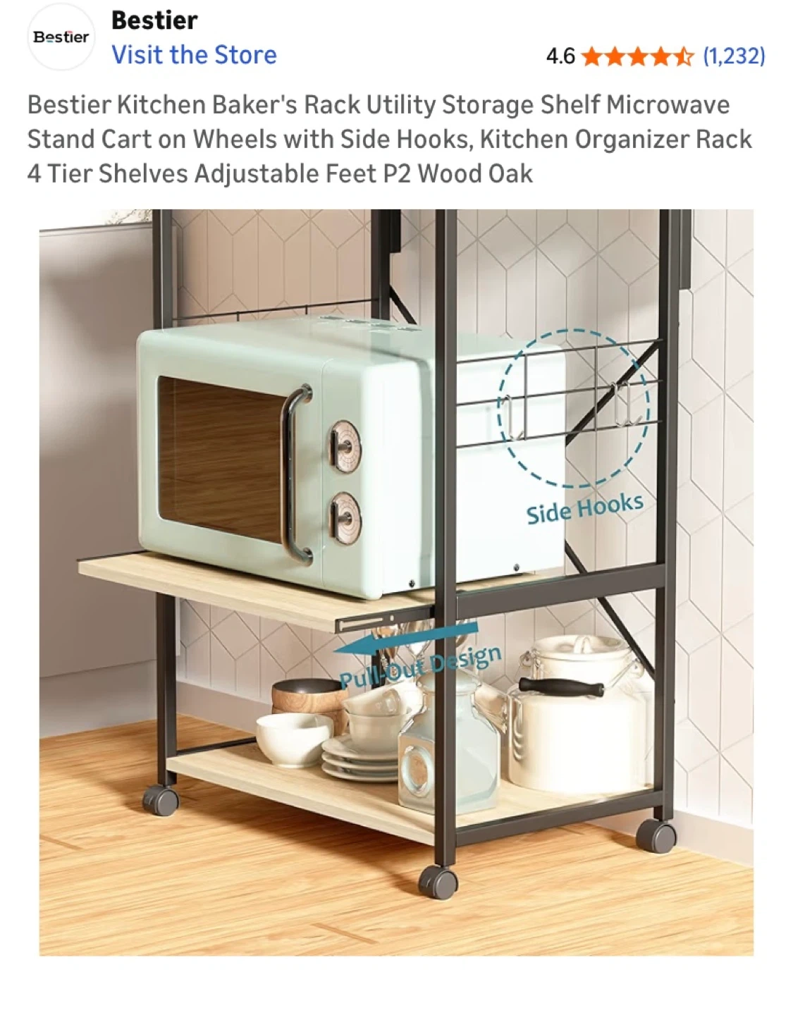 Selling a Bestier Kitchen Baker's Rack in Wood Oak. It’s a utility storage shelf perfect for a microwave stand or kitchen organizer.