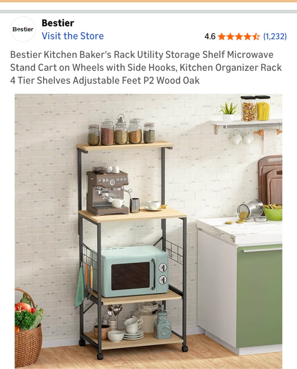 Selling a Bestier Kitchen Baker's Rack in Wood Oak. It’s a utility storage shelf perfect for a microwave stand or kitchen organizer.
