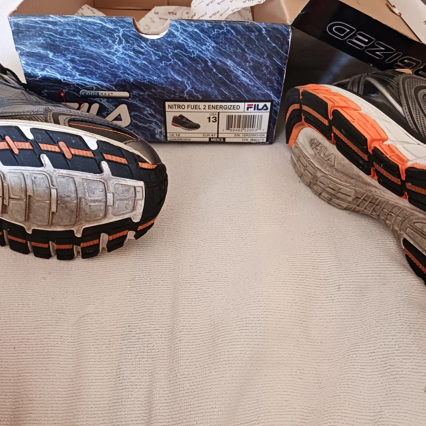 Selling a pair of Fila Nitro Fuel 2 Energized men's shoes in size 13. They come with the original box. The shoes feature Cool Max technology.