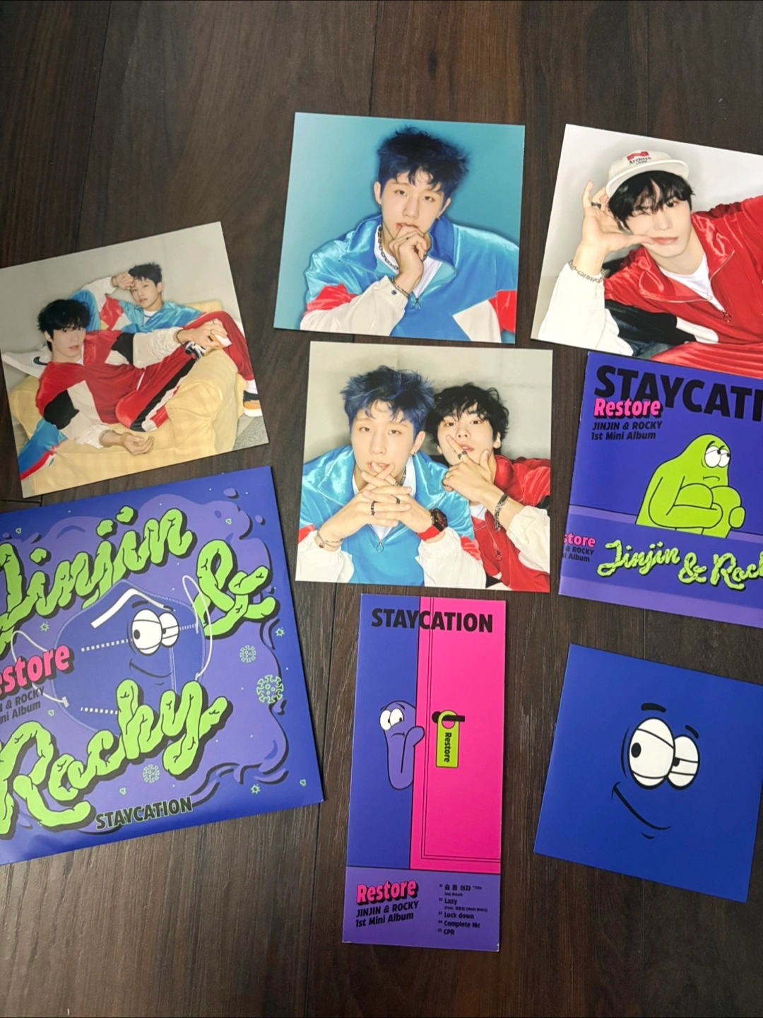 Selling Jinjin & Rocky's STAYCATION 1st Mini Album! It's in great condition. Perfect for any Astro fan looking to add to their collection