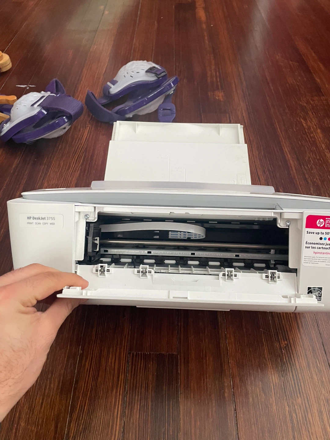 Selling a used HP DeskJet 3755 printer. It can print, scan, copy, and connect to the web. It's in good working condition!