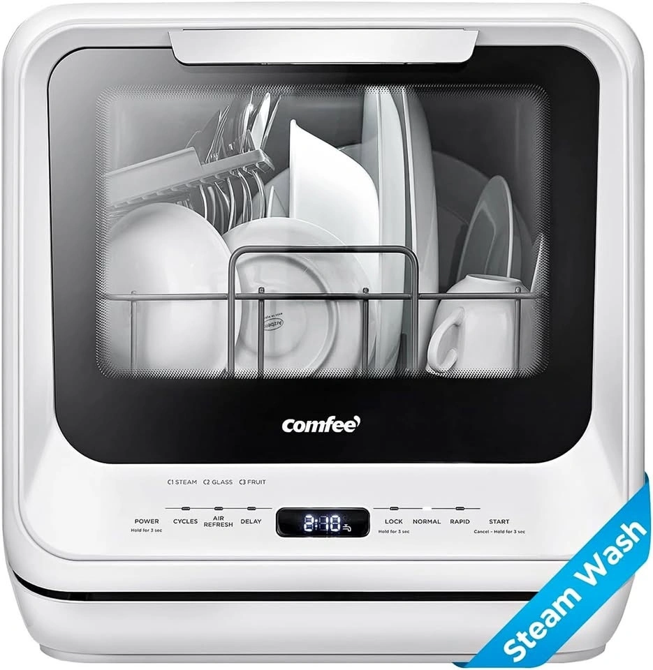 Ultra-Compact Design: The compact dishwasher can wash 30+ items (Max to 10" plates) at a time while occupying a small space (16.5 x 17.1 x 17.1 inches), ideal for apartments, small kitchens, dorms, boats, campers& RVs. (Note: COMFEE' dishwashers are tested at the factory before being shipped, so it's normal if your new tabletop dishwasher has some water inside)