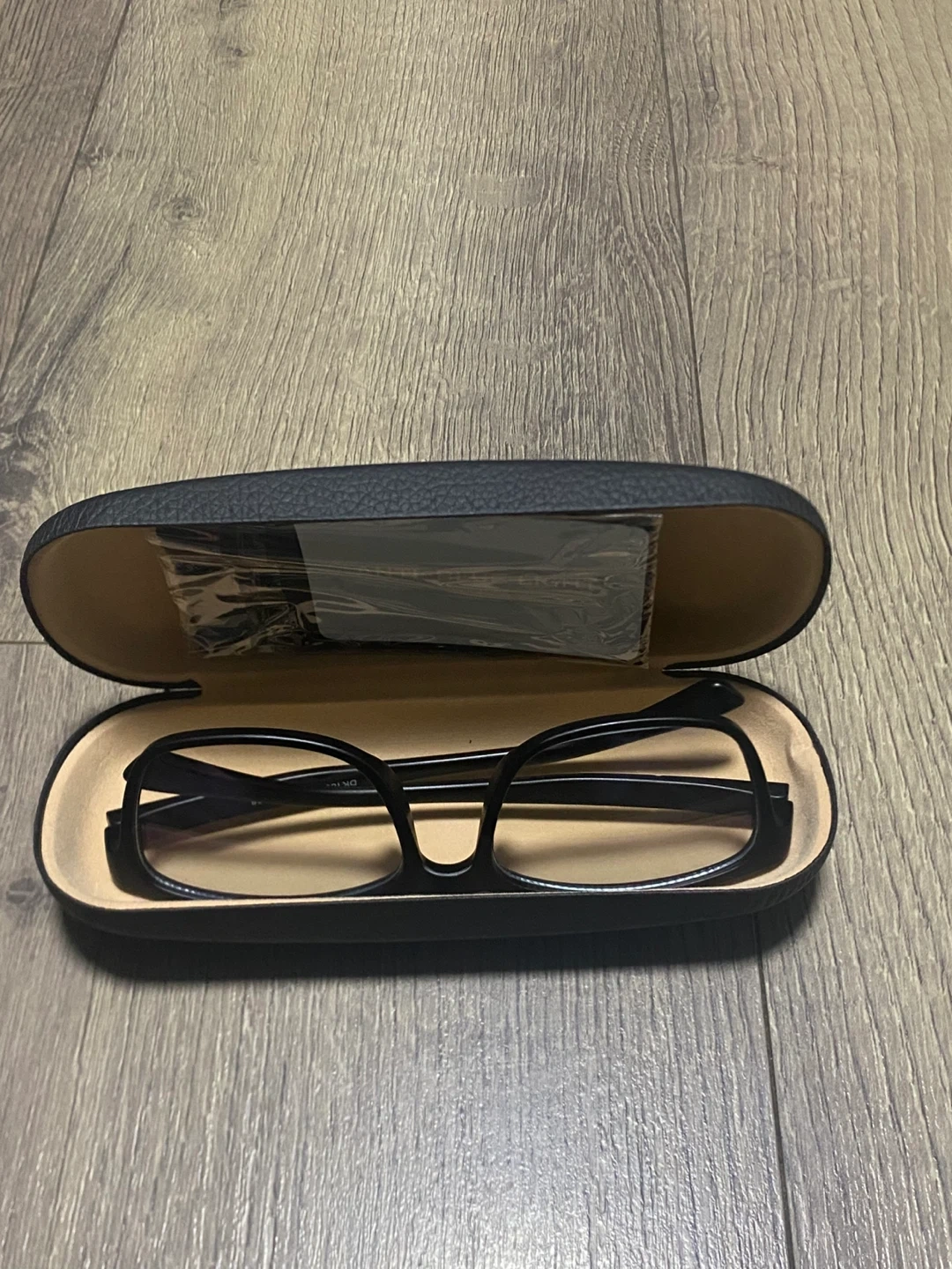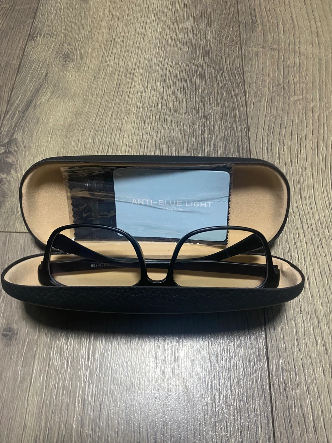 These glasses are designed to block blue light. They come with a protective case and a cleaning cloth. The frames are black and the lenses are clear.
