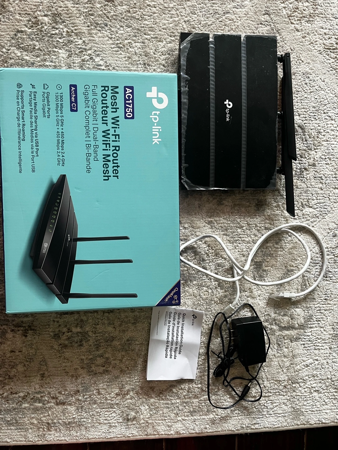 Selling my hardly 3 months old TP-Link AC1750 Dual Band Wireless AC Gigabit Router, 2.4GHz 450Mbps + 5Ghz 1300Mbps, 1 USB 2.0 Port, IPv6, Guest Network, WPS (Archer C7), Black. I changed my service provider and they provided their own router so looking to sell this one.
