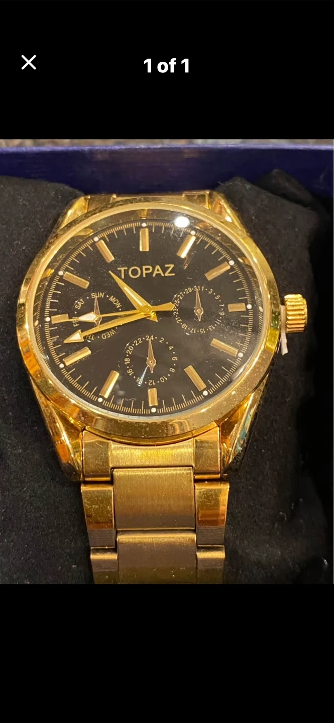 ✨Selling a Topaz wristwatch in gold. It comes with its original box. It's a stylish timepiece that would make a great addition to your collection!✨