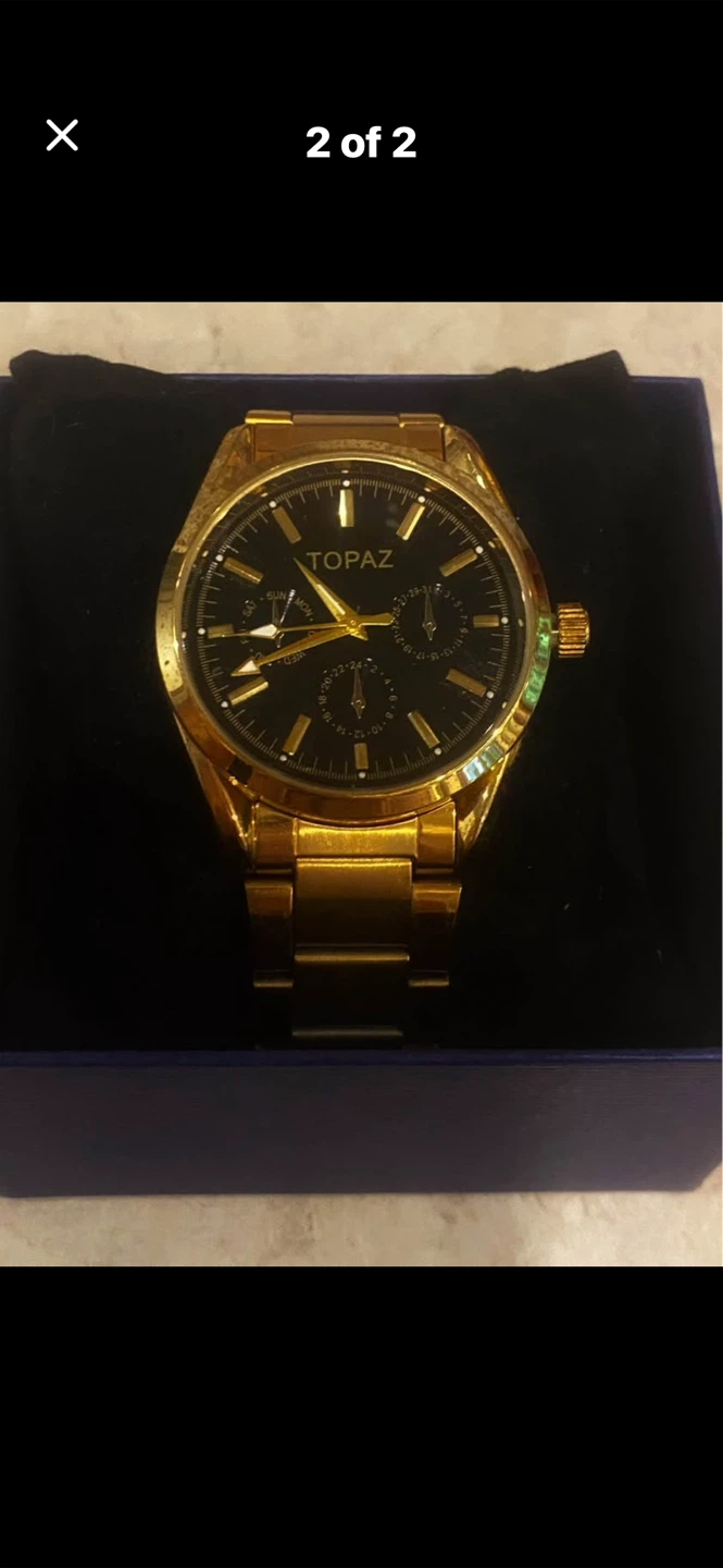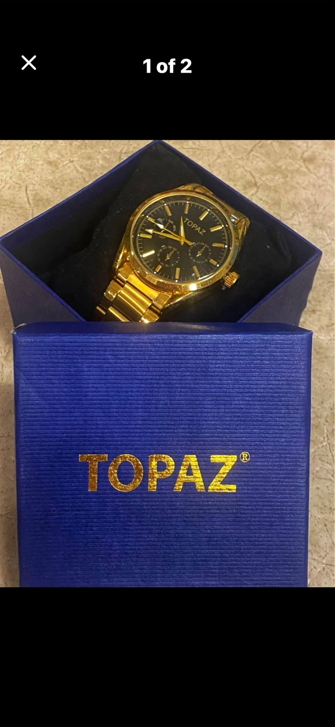 ✨Selling a Topaz wristwatch in gold. It comes with its original box. It's a stylish timepiece that would make a great addition to your collection!✨