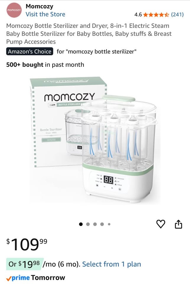 1 / 21 / 2Buy & SellBrand New Momcozy Bottle Sterilizer & DryerBrand New Momcozy Bottle Sterilizer & Dryer$85BRAND NEW, NEVER OPENED Momcozy Bottle Sterilizer and Dryer, 8-in-1 Electric Steam Baby Bottle Sterilizer. Got as a gift, never used.ConditionNewWHERE TO MEETParkway Public SchoolView MapSELLERverifiedIrishPeel Village600 reviews1 chats·0 favorites·25 viewsSEND CHAT TO SELLERHi Irish! I’m interested in your listing.Hi Irish! I’m interested in your listing.Get the Karrot app to chatSign In to chat